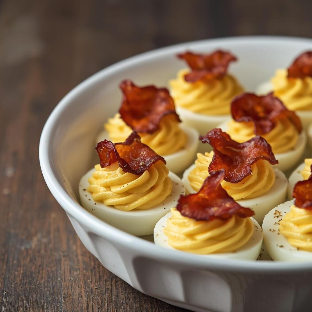 Can I make bacon deviled eggs the day before a party? Absolutely—assemble them up to 24 hours in advance and store them covered in the refrigerator, adding fresh bacon crumbles and paprika garnish just before serving.