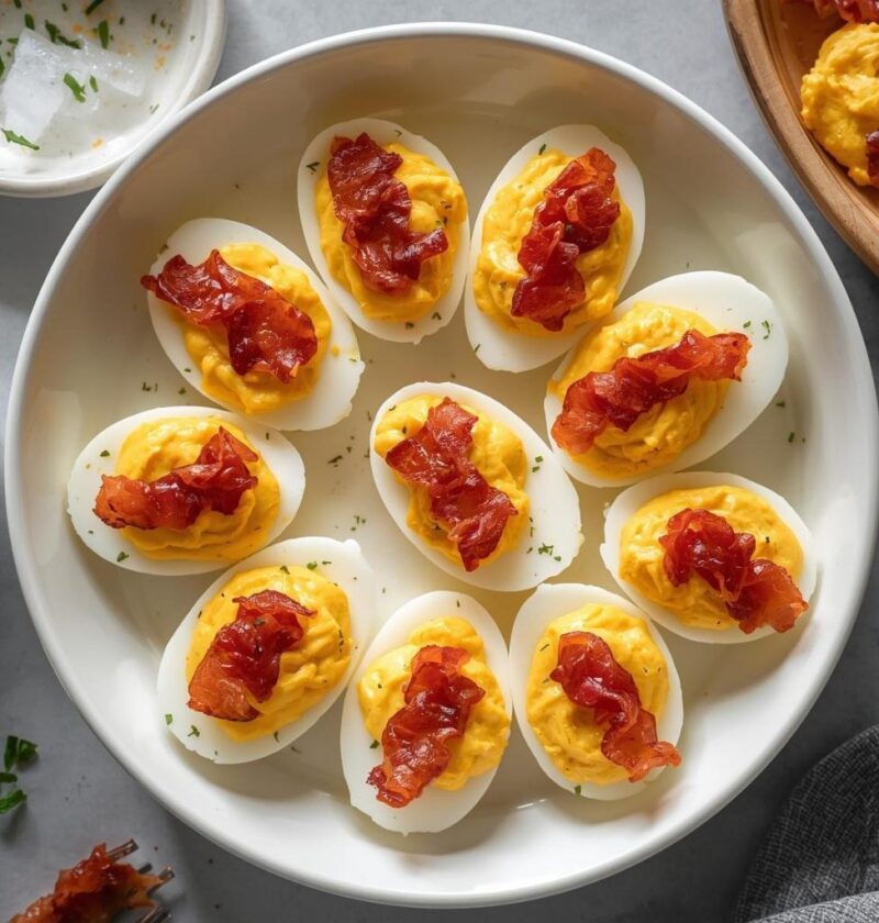 Bacon deviled eggs elevate the classic appetizer to an entirely new level of deliciousness, combining smoky, crispy bacon with creamy, savory yolk filling in perfect harmony. There’s something undeniably irresistible about the combination of bacon and eggs—it’s a pairing that feels natural, comforting, and indulgent all at once. These deviled eggs are deceptively simple to prepare yet deliver results so impressive that guests will assume you spent hours perfecting them in the kitchen. What makes this version special is how the smoky, salty flavor of bacon transforms the familiar classic into something more sophisticated and crave-worthy. Whether you’re hosting a dinner party, bringing a dish to share at a gathering, or simply craving a protein-packed snack, bacon deviled eggs never disappoint. The beauty of this recipe lies in its straightforward execution combined with the dramatic flavor boost that bacon provides, creating an appetizer that feels restaurant-quality yet requires minimal effort and ingredients beyond the traditional version.