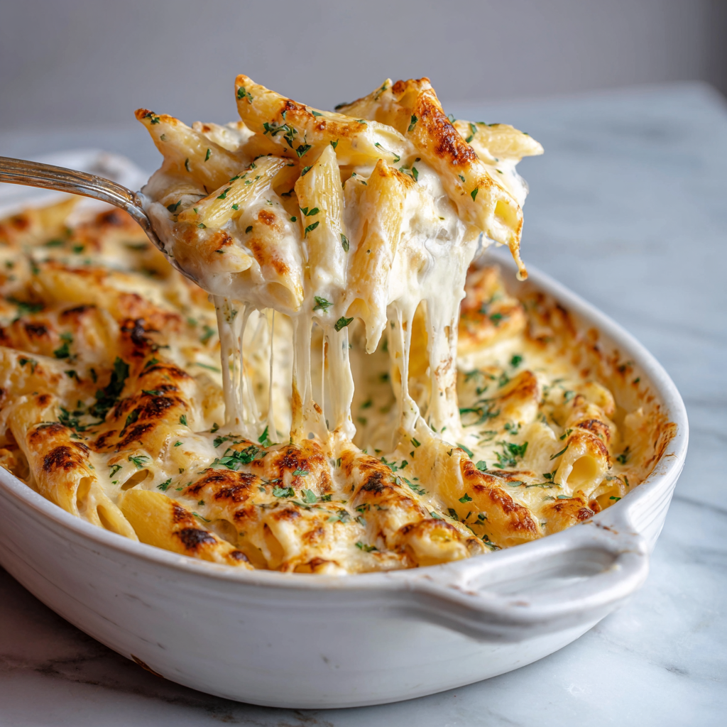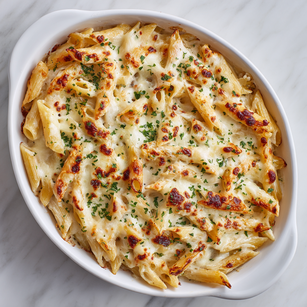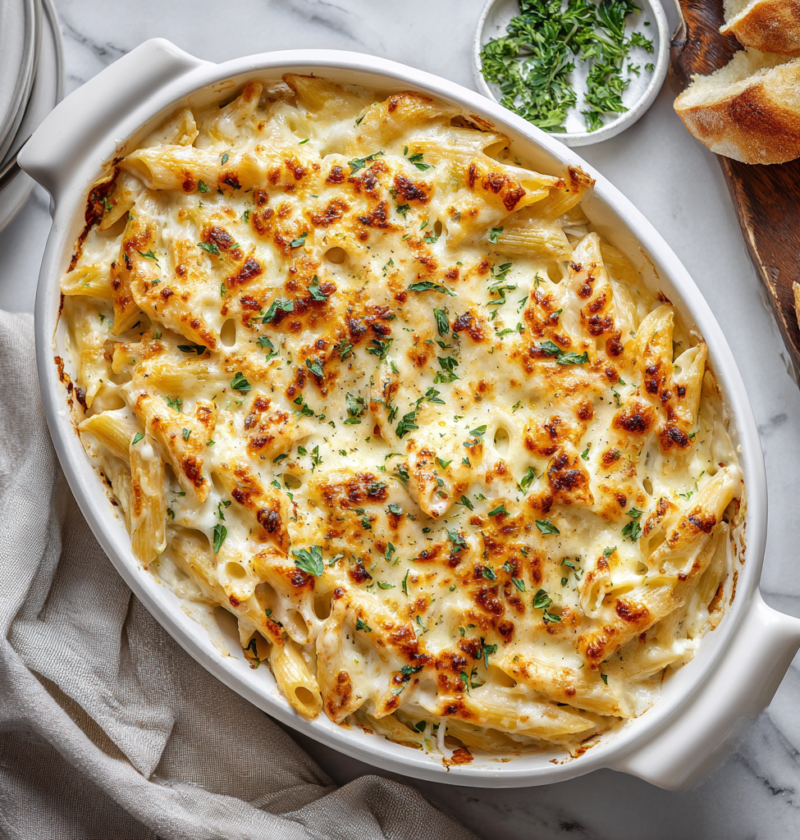 Baked Penne Alfredo brings together creamy, luxurious comfort with elegant presentation, transforming simple pasta and homemade sauce into a stunning dish that tastes like you’ve been cooking all day. This remarkable casserole combines tender penne tubes with silky Alfredo sauce and a golden, crispy cheese-topped crust, creating something genuinely greater than the sum of its parts. What makes this recipe truly special is its ability to deliver restaurant-quality results using straightforward techniques and readily available ingredients that you likely already have in your kitchen. The combination of creamy sauce, perfectly cooked pasta, and a bubbly cheese crust creates layers of flavor and texture that satisfy on every level. Whether you’re preparing a special family dinner or impressing guests at an elegant gathering, Baked Penne Alfredo delivers consistent, delicious results that feel far more complicated than the actual effort required. This dish proves that you can create impressive, restaurant-worthy meals in your own kitchen when you focus on quality ingredients and proper technique.