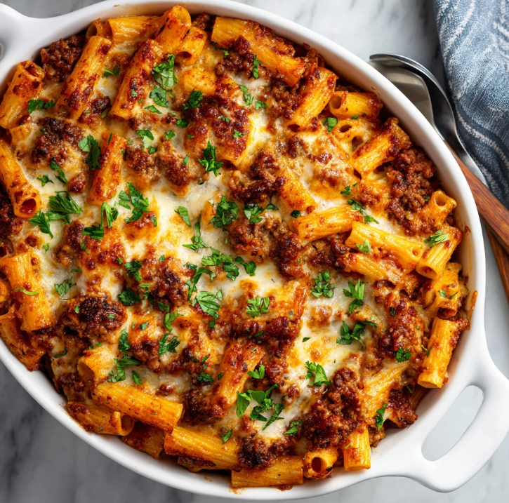 There’s something wonderfully satisfying about pulling a bubbling, golden casserole from the oven filled with tender pasta tubes coated in a rich, meaty tomato sauce and topped with melted mozzarella that stretches gloriously with every forkful. First time I made baked ziti with meat sauce from scratch instead of relying on jarred sauce, I was amazed at how dramatically superior homemade tastes when you build a proper meat sauce from quality ingredients and allow the flavors to develop through careful cooking and simmering. The beauty of this classic Italian-American comfort dish lies in its remarkable simplicity combined with absolutely impressive results: quality ground beef, tomatoes, pasta, and cheese layer together to create something genuinely greater than the sum of its parts. Additionally, this recipe proves that restaurant-quality baked pasta doesn’t require hours of preparation or complicated techniques; straightforward cooking methods combined with proper ingredient quality create results that taste far more impressive than the minimal actual effort involved. Whether you’re cooking for a hungry family, meal prepping for busy weeks ahead, hosting casual dinner parties, or simply craving something warm and deeply satisfying, this baked ziti with meat sauce delivers classic flavors that remind you exactly why this dish has remained beloved for generations.