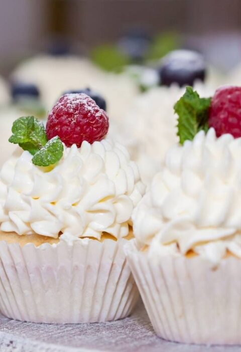 - In a chilled bowl, pour the heavy whipping cream and add the powdered sugar and vanilla extract.