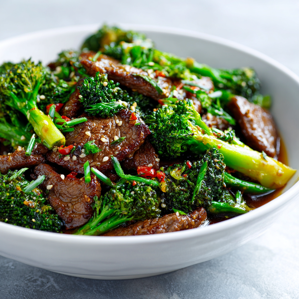 • 1.5 pounds beef sirloin or flank steak • 6 cups fresh broccoli florets (about 1.5 pounds) • 3 tablespoons vegetable oil or peanut oil, divided • 6 cloves fresh garlic, minced • 1 tablespoon fresh ginger, minced • 3 green onions, sliced (white and green parts separated) • 1/4 cup soy sauce • 2 tablespoons oyster sauce • 1 tablespoon sesame oil • 1/4 cup beef broth or water • 2 tablespoons brown sugar • 1 tablespoon rice vinegar or white vinegar • 1.5 tablespoons cornstarch mixed with 3 tablespoons water • 1/2 teaspoon black pepper • 1/2 teaspoon garlic powder • 1/4 teaspoon red pepper flakes (optional) • 2 tablespoons toasted sesame seeds • 1 teaspoon fresh lime juice • Zest of 1 lime