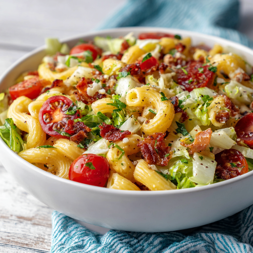 BLT Pasta Salad brings together the beloved flavors of a classic bacon, lettuce, and tomato sandwich transformed into a refreshing, make-ahead salad that celebrates fresh ingredients and comforting familiarity in an entirely new form. This creative dish combines perfectly cooked pasta with crispy bacon, tender lettuce, juicy tomatoes, creamy mayonnaise-based dressing, and bright herbs, creating something genuinely exciting that works beautifully for casual gatherings, picnics, and weekday meal prep. What makes this recipe truly special is its remarkable ability to capture the quintessential BLT experience in salad form, delivering all the beloved flavors while offering the convenience and appeal of a cold, make-ahead dish that improves with time. The combination of tender pasta, crispy bacon, fresh vegetables, and rich dressing creates layers of flavor and texture that make every bite interesting and absolutely delicious. Whether you’re planning a backyard gathering, packing lunches for the week, or seeking a satisfying main course that brings smiles to everyone’s faces, BLT Pasta Salad delivers consistent, impressive results that exceed expectations every single time. This dish proves that creative takes on classics can be genuinely exciting and crave-worthy when you respect the original’s appeal while bringing fresh perspective and technique.