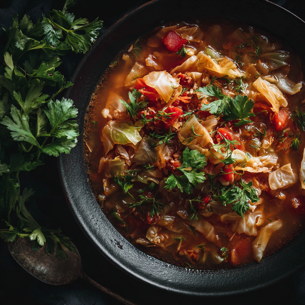 - Serve the cabbage soup hot, garnished with fresh herbs, lemon wedges, or other optional toppings according to preference.
