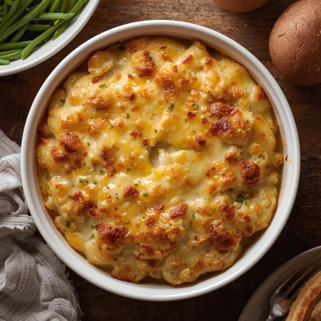 Can I make cheesy potatoes casserole ahead and freeze it? Yes, assemble the complete casserole, cover tightly with plastic wrap and foil, and freeze for up to two months. Bake directly from frozen at 350°F for 60–75 minutes until bubbling and golden.