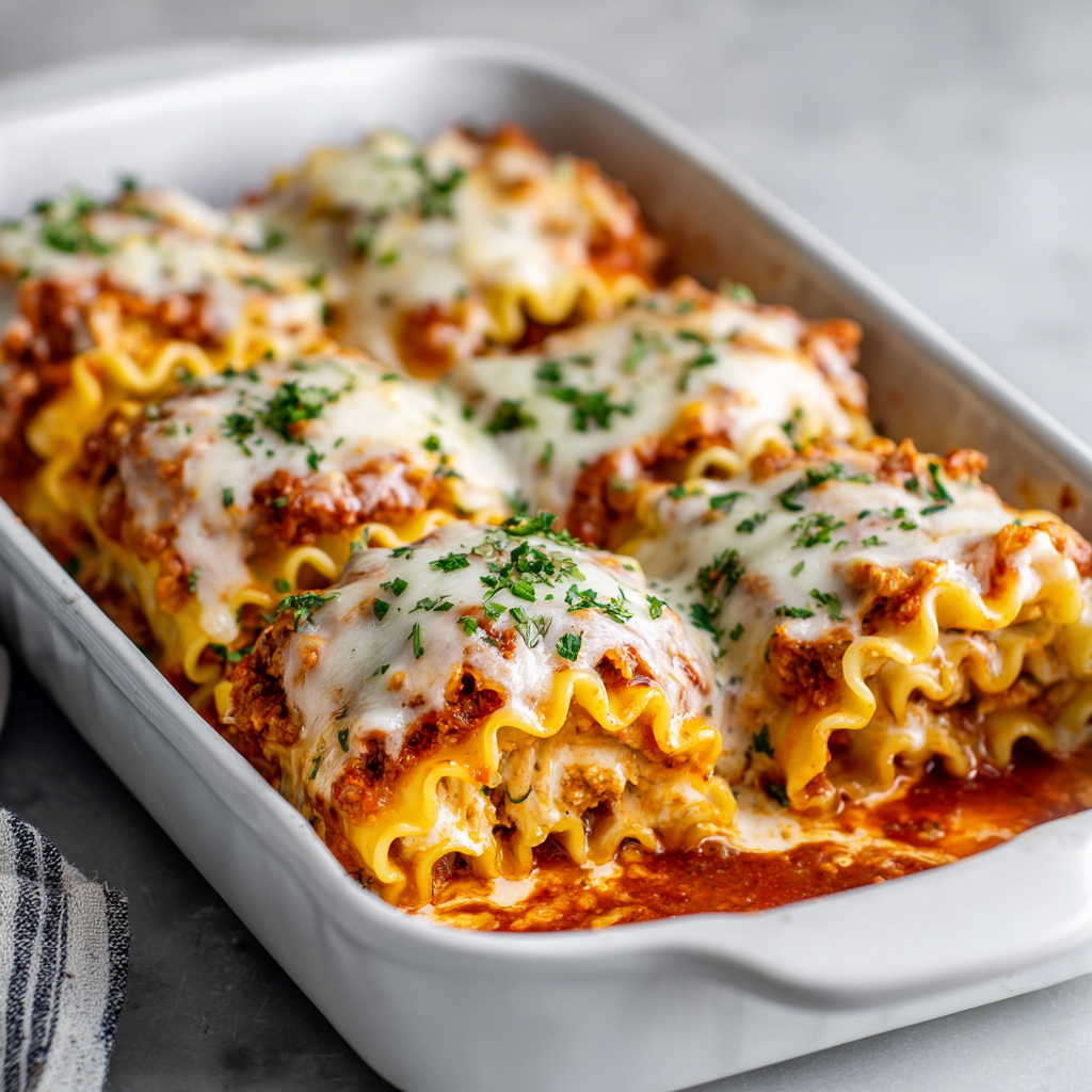 First, the secret to perfectly tender roll-ups lies in not overbaking them—remove them from the oven as soon as the cheese becomes bubbly and golden, before the edges begin drying out. Second, always reserve some sauce to pour over the assembled roll-ups before baking; this keeps them moist and prevents drying during the cooking process.