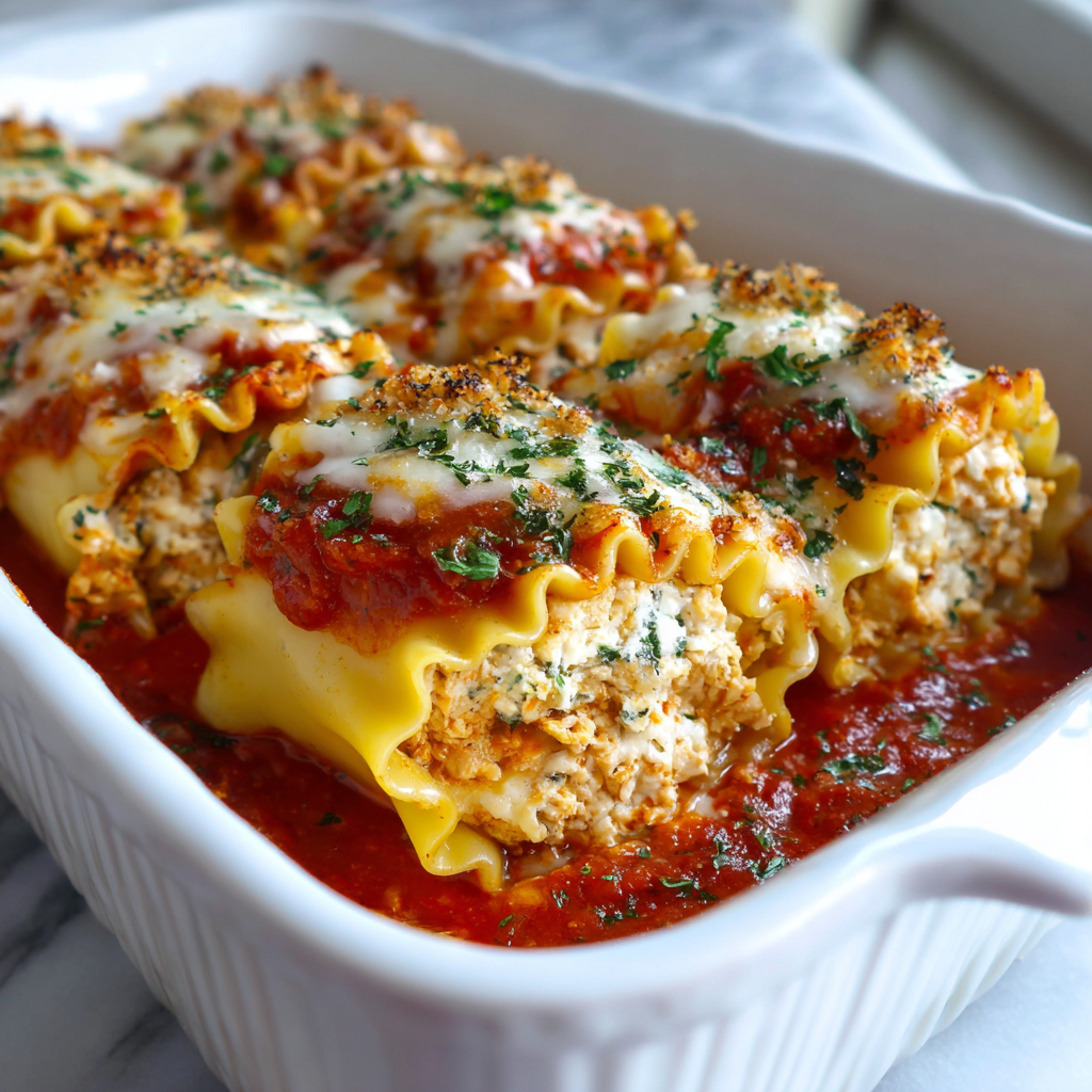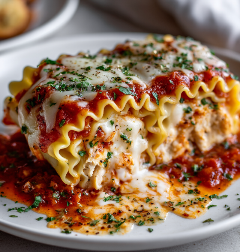 Chicken Lasagna Roll Ups represent the perfect marriage of classic Italian comfort and modern home cooking convenience, delivering all the beloved flavors of traditional lasagna in an elegant, individual presentation that feels special enough for dinner parties. These tender pasta rolls stuffed with creamy chicken and ricotta filling, then baked in a savory tomato sauce, offer everything you love about lasagna without the intimidating layering process. What makes this recipe so wonderfully appealing is its combination of sophistication and surprising simplicity—you’ll impress your family and guests with what appears to be complicated cooking, yet the actual preparation requires nothing more than rolling, filling, and baking. The individual portions make serving effortless, and cleanup becomes a breeze since there’s no bulky lasagna pan to manage. Whether you’re planning a special family dinner or preparing an impressive dish for entertaining, these roll-ups deliver restaurant-quality results that taste like you’ve spent hours in the kitchen. This dish proves that spectacular meals don’t require complicated techniques or unusual ingredients.