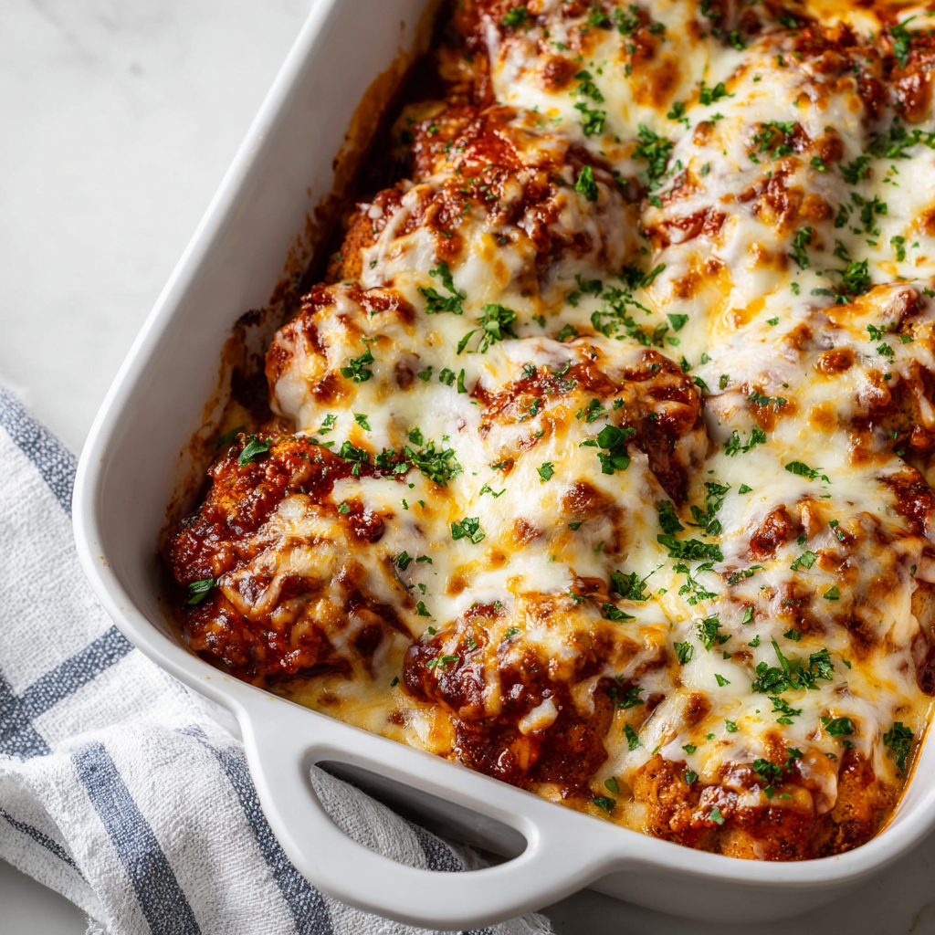 If you don’t have marinara sauce, substitute with any red pasta sauce or even make a quick sauce by simmering canned tomatoes with garlic and herbs for 10 minutes. Swap mozzarella cheese for a combination of provolone and mozzarella for a more complex flavor profile, or use fontina cheese for a creamier, richer taste. For a gluten-free version, use gluten-free breadcrumbs and all-purpose flour blends, which work beautifully without compromising texture. Fresh herbs can be replaced with dried herbs at half the quantity, though fresh basil and parsley provide noticeably more vibrant flavor and visual appeal. Consider adding sautéed mushrooms, caramelized onions, or roasted red peppers between the chicken and sauce for added flavor complexity. For a protein boost, layer thin slices of prosciutto or pancetta under the chicken before adding the sauce.