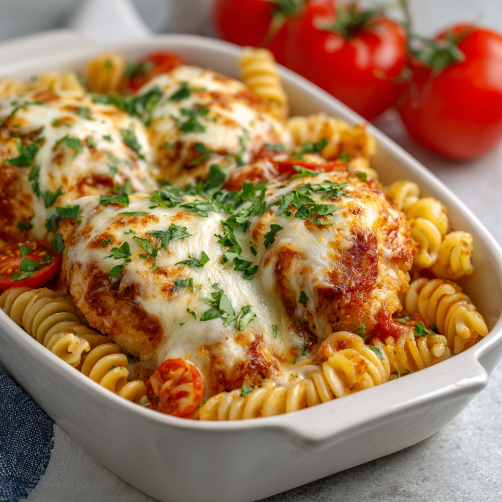 Chicken Parmesan Pasta represents the perfect intersection of comfort and sophistication, delivering impressive results using straightforward techniques and readily available ingredients. This dish proves that restaurant-quality meals are entirely achievable in your own kitchen when you combine quality components with proper technique and care. Whether you’re preparing an elegant dinner for special guests or creating an impressive family meal that feels a bit more upscale than usual, Chicken Parmesan Pasta delivers consistent, delicious results that satisfy and delight everyone fortunate enough to enjoy it. The crispy chicken, aromatic tomato sauce, and tender pasta create an experience that goes far beyond basic sustenance—it’s genuinely memorable and delicious.