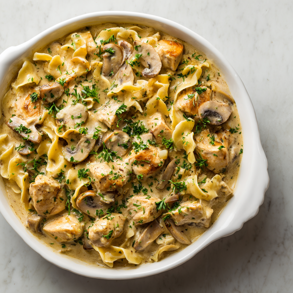 There’s something wonderfully elegant about twirling a fork through silky egg noodles and sauce before encountering tender chicken pieces and sautéed mushrooms in a creamy, luxurious coating that feels both comforting and sophisticated. First time I made homemade chicken stroganoff instead of relying on packaged versions, I understood immediately why this classic Eastern European dish has remained beloved for generations—when done properly, it’s pure comfort wrapped in sophistication. The beauty of this recipe lies in its remarkable balance of simplicity and impressive presentation: straightforward ingredients and basic cooking techniques combine to create something that tastes like it came from a fine dining establishment while requiring minimal skill or complicated procedures. Additionally, this recipe proves that elegant comfort food doesn’t need to be time-consuming or stressful; careful attention to technique and quality ingredients transform ordinary chicken and mushrooms into something genuinely extraordinary. Whether you’re cooking a special dinner for someone you love, entertaining guests who appreciate genuine home cooking, preparing a comforting weeknight meal, or simply craving something warm and deeply satisfying, this chicken stroganoff delivers restaurant-quality sophistication with straightforward technique and ingredients that you likely already have on hand.