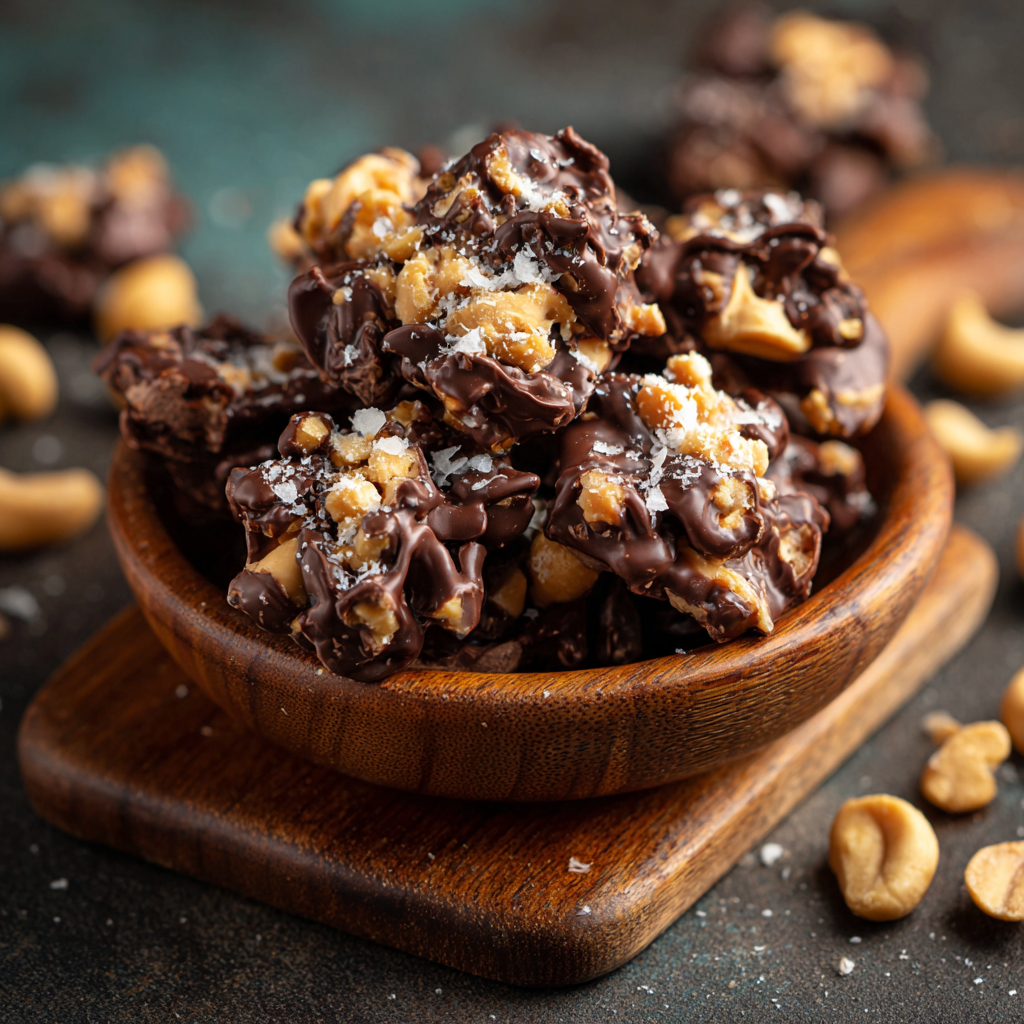 Several practical considerations will help you create beautiful, delicious chocolate peanut clusters that turn out perfectly every single time. First, the quality of chocolate dramatically affects the final result—use chocolate you enjoy eating, as it becomes the primary flavor component, and avoid chocolate chips containing additives if possible. Next, the coconut oil is genuinely important; it thins the chocolate slightly without altering flavor, creating a snappier set and smoother texture than chocolate alone. Additionally, roasted peanuts are essential; raw or blanched peanuts lack the toasted flavor that makes these clusters irresistible, so don’t substitute. Meanwhile, keep the water bath temperature moderate—too-hot water can burn the chocolate, creating bitter flavors and grainy texture, so maintain a gentle simmer. The chocolate and oil mixture should be warm enough to remain pourable but cool enough that you can hold your hand near it without significant heat. For deeper chocolate flavor, use dark chocolate instead of semi-sweet, though this creates a less sweet final product. Those preferring sweeter clusters can add 1-2 tablespoons of powdered sugar to the chocolate mixture, stirring until thoroughly incorporated. For a more sophisticated flavor profile, substitute half the peanuts with roasted cashews, almonds, or pecans, creating interesting flavor combinations. If clusters become too thick to drop before setting, never reheat over direct heat; instead, gently warm the mixture by setting the bowl in warm water for 30 seconds. The vanilla extract enhances chocolate flavor without being noticeable as vanilla, so it’s worth including for superior taste. For a salted chocolate variation, use unsalted peanuts and increase the sea salt to ½ teaspoon, creating a sweet-salty contrast that’s genuinely addictive. If peanuts slide away from the chocolate as you drop clusters, the chocolate may be too thin; wait another minute before portioning. For the easiest cleanup, line your baking sheet with parchment that extends up the sides—you can then simply lift the parchment away, leaving no cleanup required.