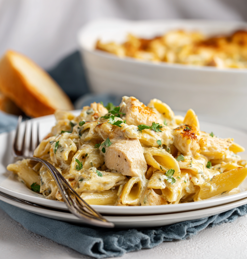This creamy chicken pasta is essentially a complete meal on its own, requiring nothing more than perhaps a simple side salad or crusty bread for a completely satisfying dinner. However, if you want to round out the table, consider serving a fresh green salad dressed in light vinaigrette to cut through the richness and add brightness. Next, roasted vegetables like asparagus, green beans, or roasted broccoli provide wonderful textural contrast and additional nutrition without overwhelming the delicate, creamy flavors. Additionally, garlic bread or crusty Italian bread works beautifully alongside the pasta for soaking up any flavorful sauce. For a lighter presentation, serve alongside steamed or sautéed spinach tossed with garlic for added vegetables and nutrition without heaviness. A crisp white wine like Pinot Grigio or Sauvignon Blanc pairs beautifully with the creamy sauce and chicken flavors.
