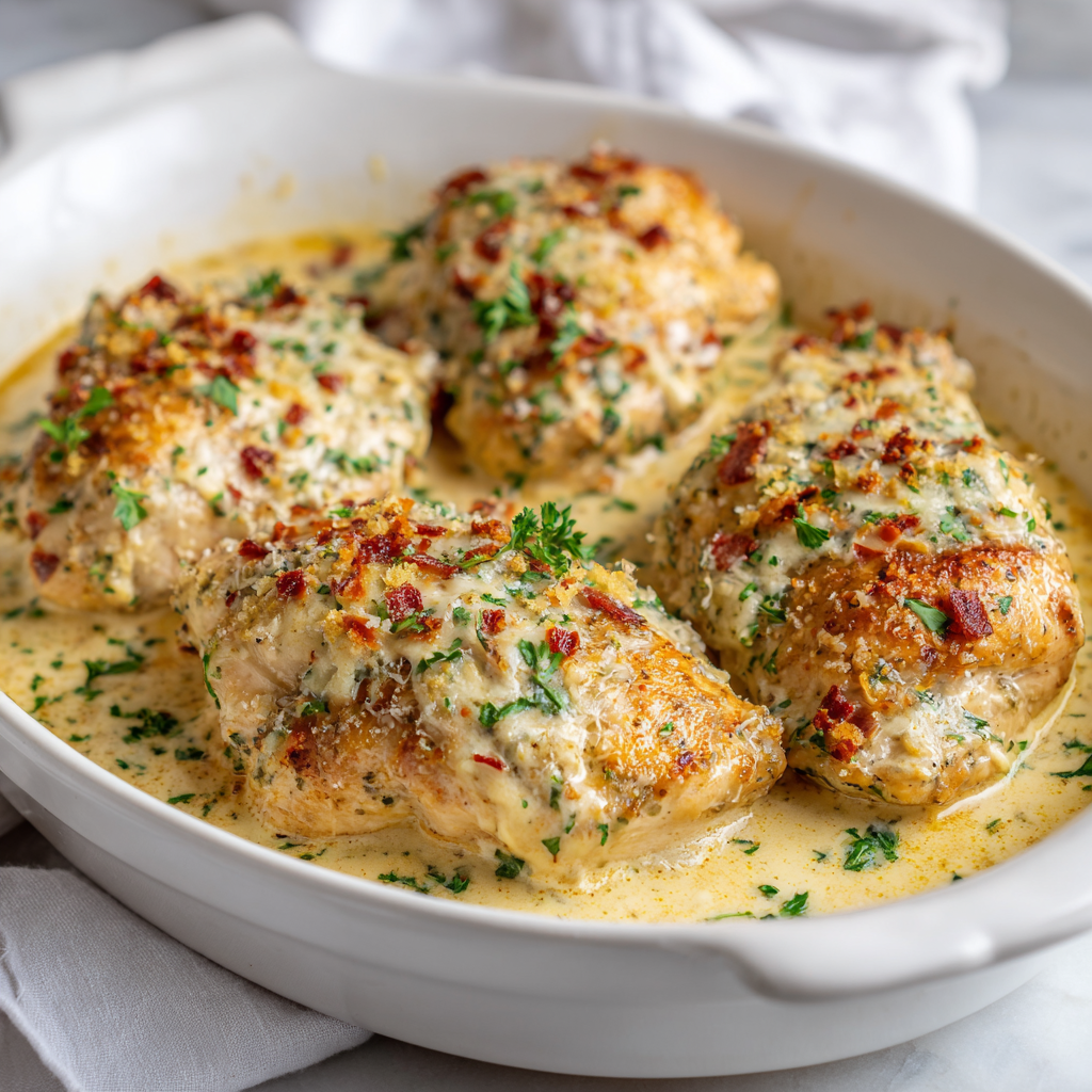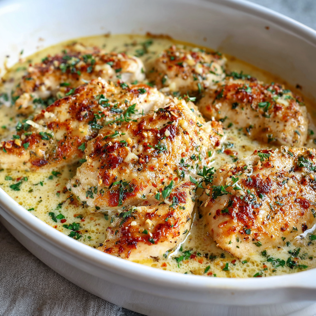 • 4 boneless, skinless chicken breasts (about 6-8 ounces each) • 4 tablespoons unsalted butter, divided • 2 tablespoons olive oil • 8 cloves fresh garlic, minced (or 10 for garlic lovers) • 1 cup heavy cream • 1/2 cup chicken broth • 1 cup freshly grated Parmesan cheese (about 4 ounces) • 1/2 cup shredded mozzarella cheese (optional, for creaminess) • 1 teaspoon kosher salt • 1/2 teaspoon black pepper • 1/2 teaspoon garlic powder • 1/4 teaspoon white pepper (optional, for smoother flavor) • 1/2 teaspoon Italian seasoning • 1/4 teaspoon red pepper flakes (optional) • 1/4 teaspoon nutmeg (just a pinch) • 2 tablespoons fresh lemon juice • 1 teaspoon fresh thyme leaves (or 1/2 teaspoon dried) • 1 teaspoon fresh rosemary leaves (or 1/2 teaspoon dried) • 3 tablespoons fresh parsley, finely chopped • 2 tablespoons fresh basil, finely chopped (optional) • Zest of 1 lemon • 1 tablespoon cornstarch mixed with 2 tablespoons milk (optional, if sauce needs thickening)