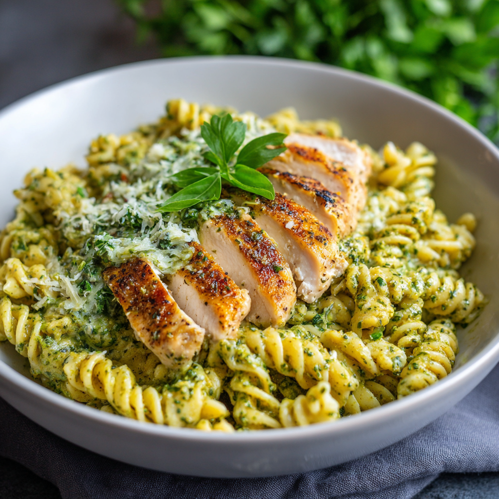 There’s something irresistibly delicious about a pasta dish that combines fresh, vibrant basil with tender chicken and luxurious cream, creating layers of flavor that feel both light and deeply satisfying. Creamy Pesto Chicken Pasta brings together the brightness of homemade pesto, succulent chicken, and silky cream sauce in a way that tastes genuinely restaurant-quality while remaining surprisingly easy to make at home. This is the kind of meal that makes your kitchen smell absolutely incredible, that transforms an ordinary weeknight into something special, and that leaves everyone at your table asking for seconds and requesting the recipe. First, what makes this dish so special is how the fresh pesto maintains its vibrant color and bright flavor despite being combined with cream, creating a sauce that’s both elegant and comforting. Next, the chicken absorbs all those wonderful herbal notes while the pasta becomes a perfect vehicle for the most delicious sauce imaginable. Additionally, this entire meal comes together in under thirty minutes, making it ideal for busy weeknights when you want something that tastes like you’ve spent all day cooking but haven’t actually spent more than half an hour in the kitchen. Whether you’re cooking for your family, impressing guests, or treating yourself to something truly special, creamy pesto chicken pasta delivers impressive results with minimal effort and maximum flavor.