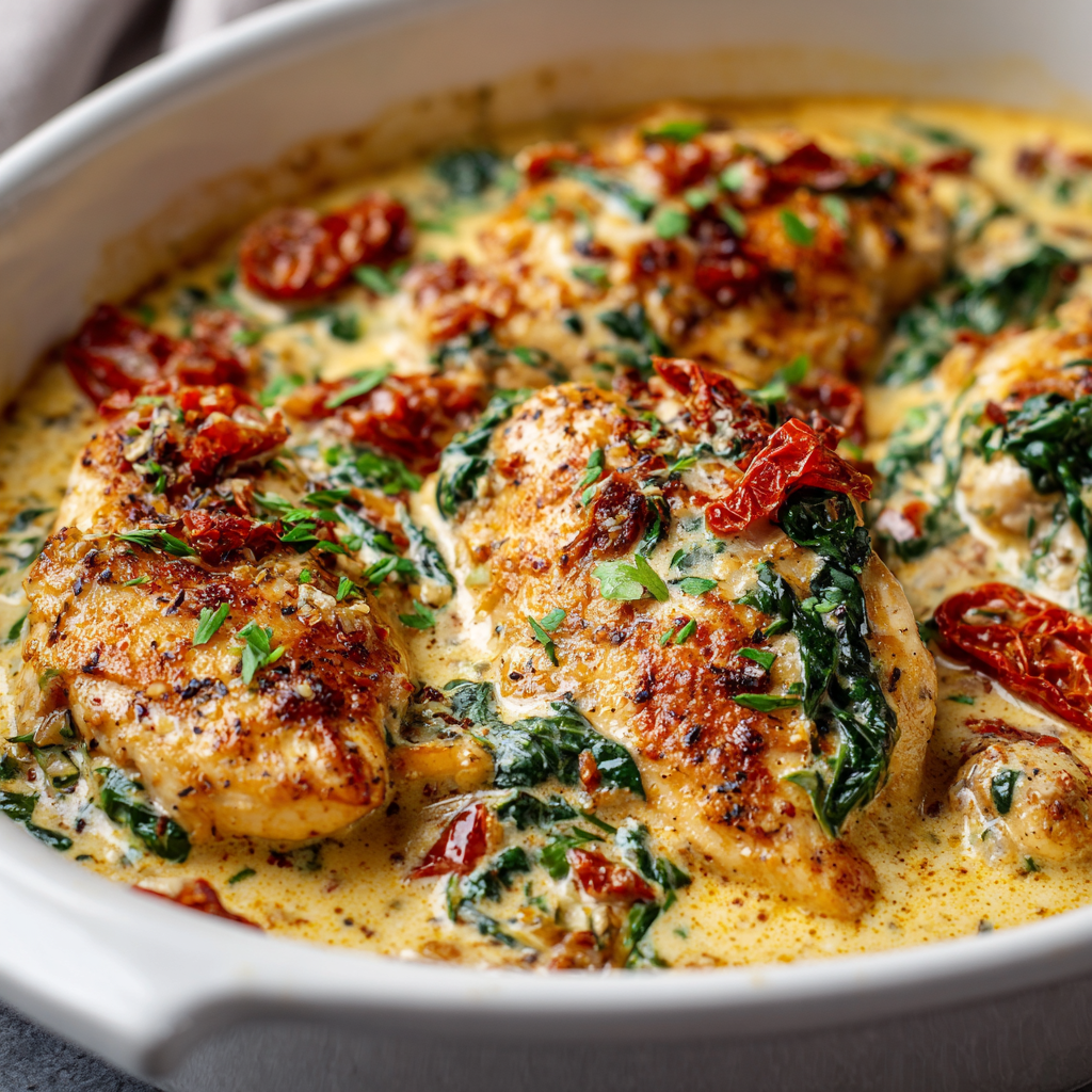 Creating restaurant-quality meals at home has never been more achievable than with creamy Tuscan chicken, a dish that combines elegant flavors with surprisingly simple preparation methods. This Italian-inspired classic features tender chicken breasts bathed in a luxurious cream sauce infused with sun-dried tomatoes, garlic, and fresh basil that tastes far more complicated than its actual preparation requires. Whether you’re cooking for a special dinner date, impressing guests without spending hours in the kitchen, or seeking weeknight dinners that feel indulgent without requiring restaurant prices, this recipe delivers remarkable results. The beauty of creamy Tuscan chicken lies in how few ingredients create such sophisticated flavors and impressive presentations. What makes this dish truly special is its versatility—it pairs beautifully with pasta, rice, or crusty bread, and adapts well to various dietary preferences through simple substitutions. Even home cooks with minimal experience will find themselves confidently creating this impressive dish because the method prioritizes clarity and straightforward techniques over complicated procedures. Creating this meal teaches you that restaurant-quality dinners don’t require expensive specialty ingredients or complicated skills; instead, they showcase how quality basics combined with proper technique create maximum impact.