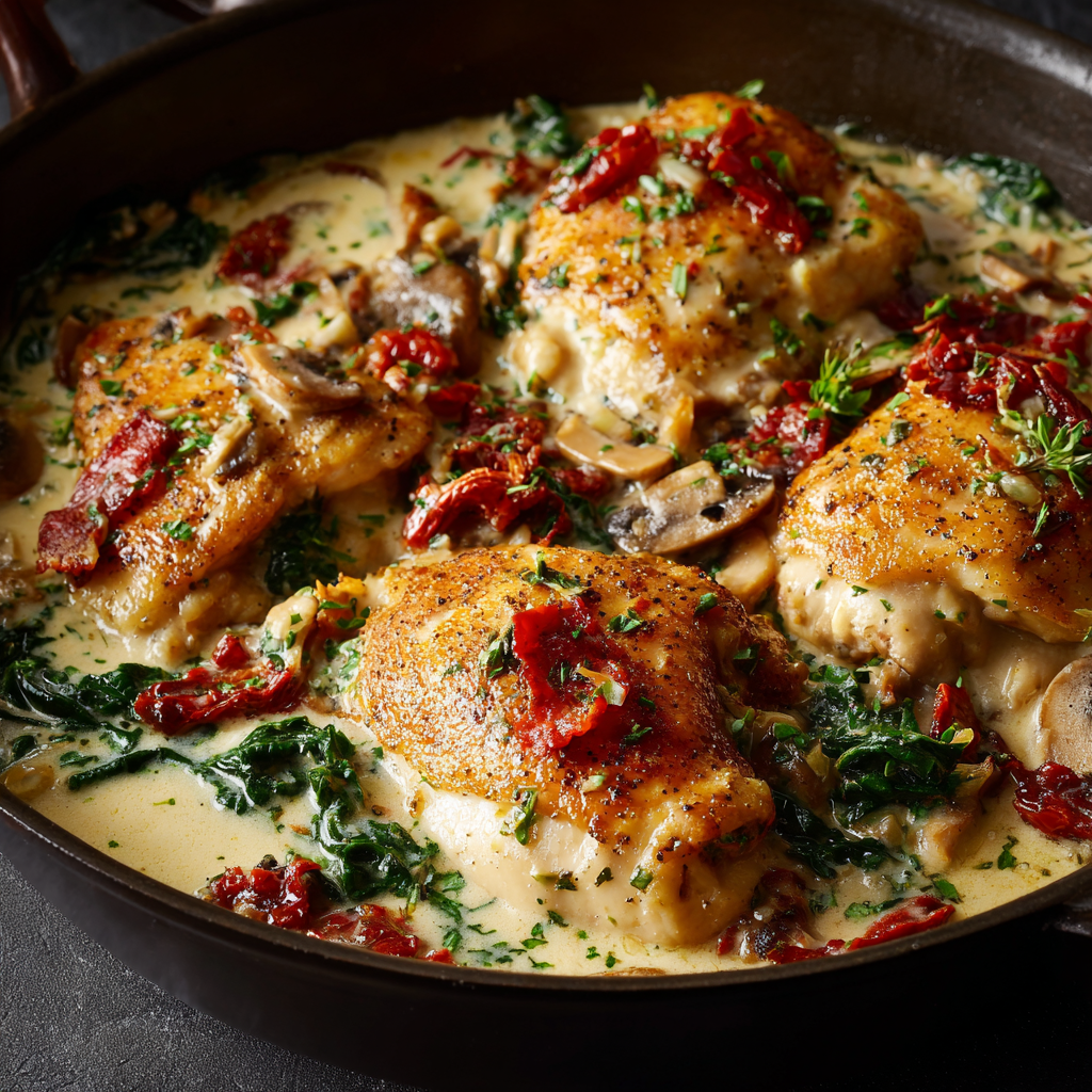 Spinach adds freshness and color while balancing the creamy sauce. Sun-dried tomatoes introduce sweetness and acidity, preventing heaviness. Adding them at the right moment preserves their texture and flavor.