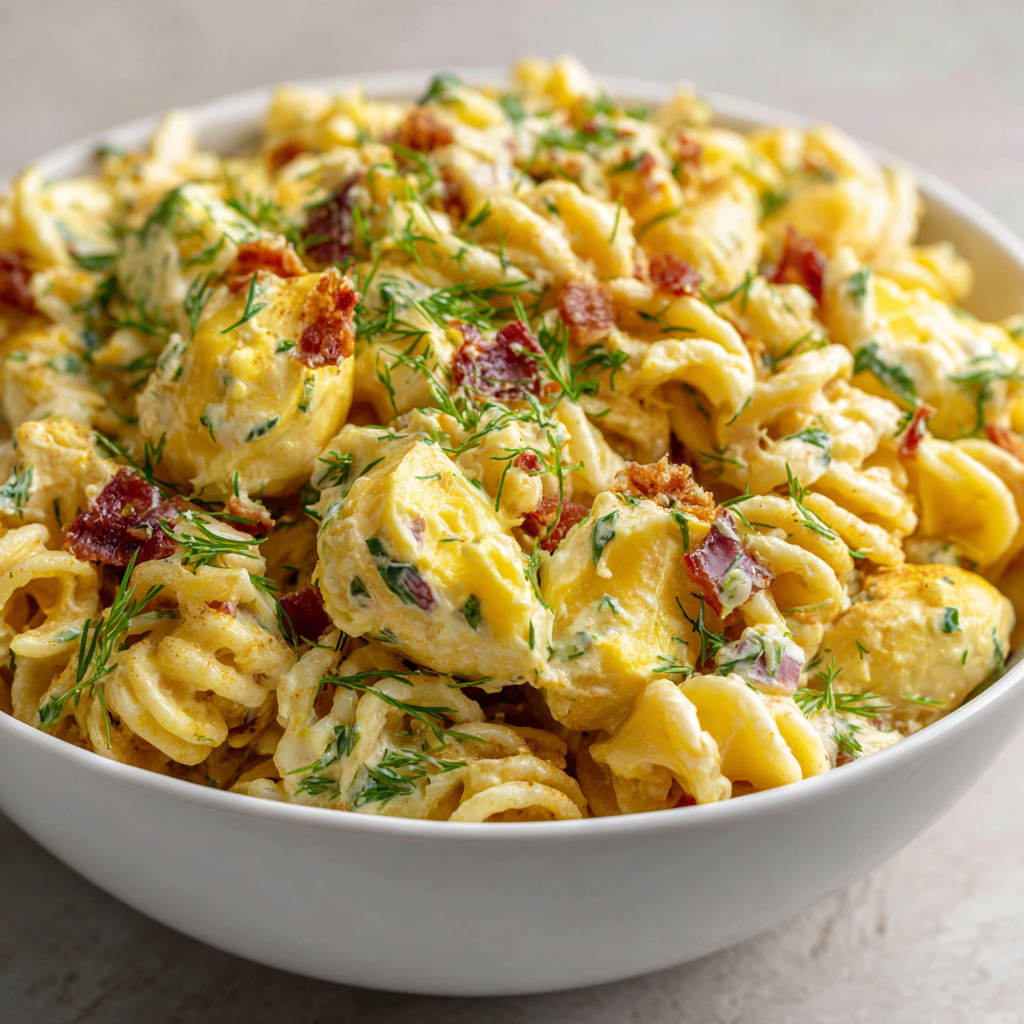 Deviled Egg Pasta Salad represents a creative take on a beloved classic that delivers nostalgic flavors in an exciting, convenient form that works beautifully for any occasion. This recipe proves that reimagining traditional dishes can be genuinely exciting and crave-worthy when you respect the original’s appeal while bringing innovation and proper technique to the preparation. Whether you’re preparing for a backyard gathering, packing lunches for the week, or seeking a satisfying main course that doesn’t require last-minute cooking, this fresh and flavorful salad delivers consistent, delicious results that satisfy and delight everyone fortunate enough to enjoy it. The combination of tender eggs, perfectly cooked pasta, fresh vegetables, and creamy mustard dressing creates an experience that goes far beyond basic sustenance—it’s genuinely delicious and memorable.