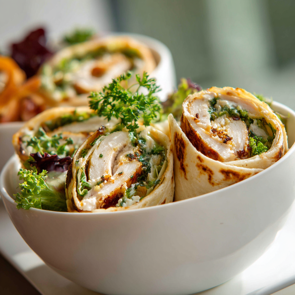Serve your chicken wraps immediately after assembly while all components remain at their optimal temperature and texture. First, present them on a cutting board or platter, optionally cutting them diagonally so the beautiful filling layers are visible to guests. Additionally, serving with side salads, roasted vegetables, or fresh fruit creates a complete meal experience. Meanwhile, these wraps work beautifully for lunch boxes, picnics, casual weeknight dinners, or even elegant entertaining because they offer impressive presentation without requiring formal plating techniques.