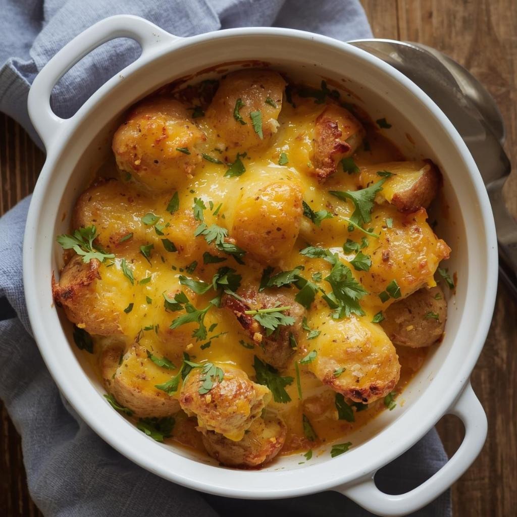 Bake the casserole for 45 to 50 minutes until the top is golden brown and the edges are bubbling gently, indicating that the filling has heated through completely. The longer baking time allows all the flavors to meld together beautifully. Remove from the oven and let the casserole rest for 5 minutes before serving, which allows everything to set slightly.