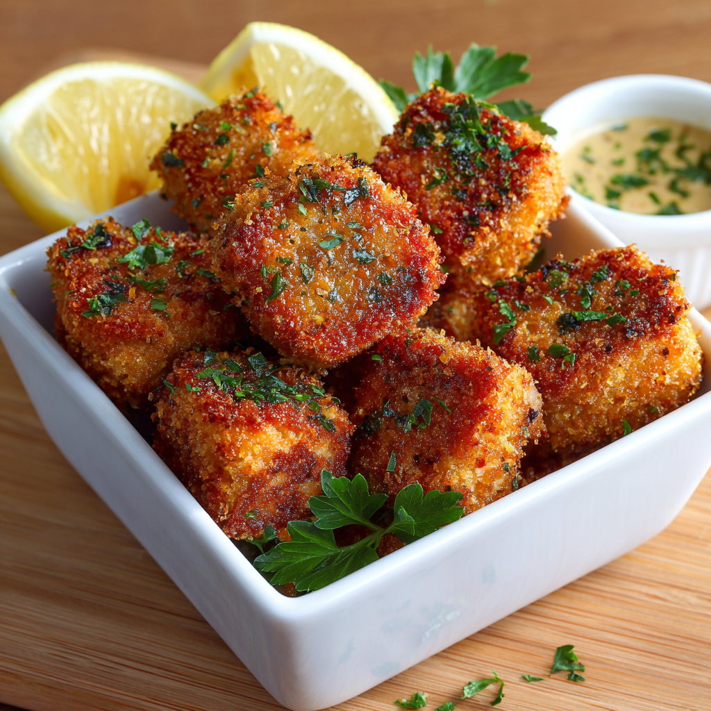 Serve these crispy salmon bites as a sophisticated appetizer during your gameday gathering, positioning them on a prominent platter where guests can easily grab them while watching the game. Next, they work beautifully as the main course served with your favorite sides such as roasted vegetables, wild rice, or a fresh green salad.