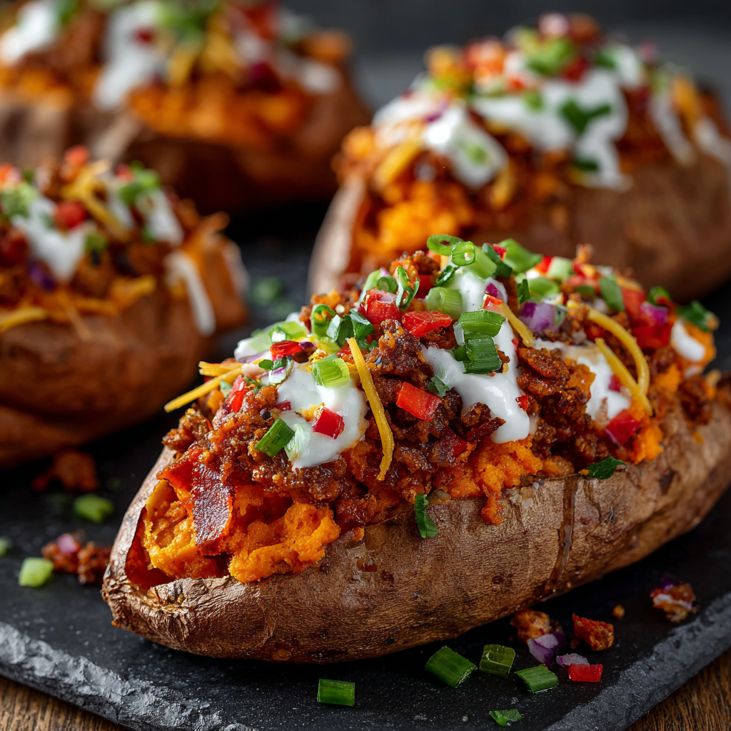 We’d love to hear if you try this recipe! Did these stuffed sweet potatoes become a new favorite in your kitchen? Please save this recipe for future gamedays, share it with friends and family who might enjoy it, and pin it to your favorite cooking board. Your feedback and shares help us continue creating delicious, nourishing recipes that bring people together. Drop a comment below with your favorite topping combinations or any creative variations you try—we read and appreciate every single one!