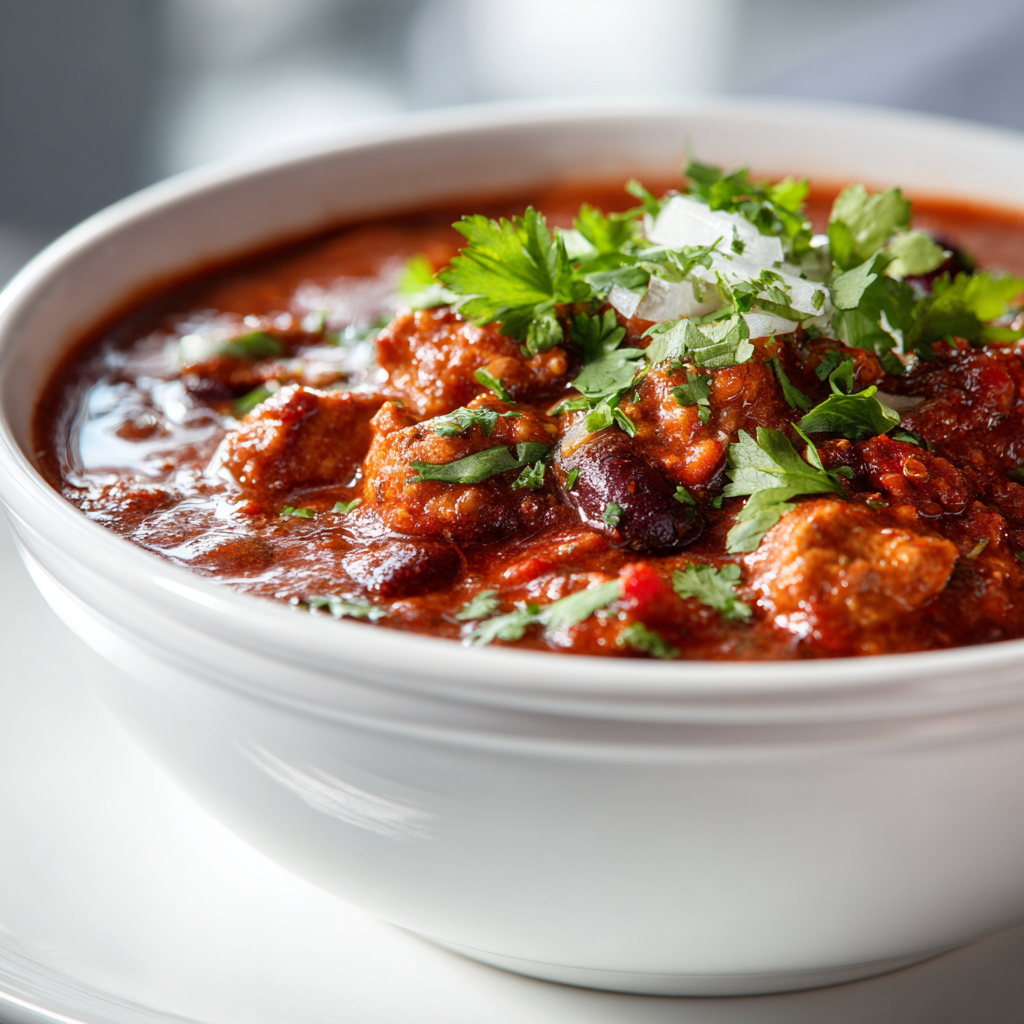- Ladle the hot chili into bowls and top with desired garnishes.