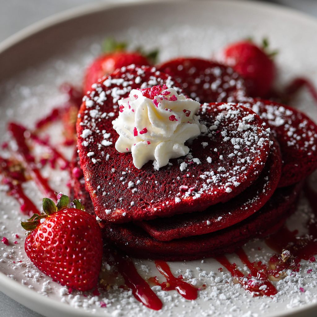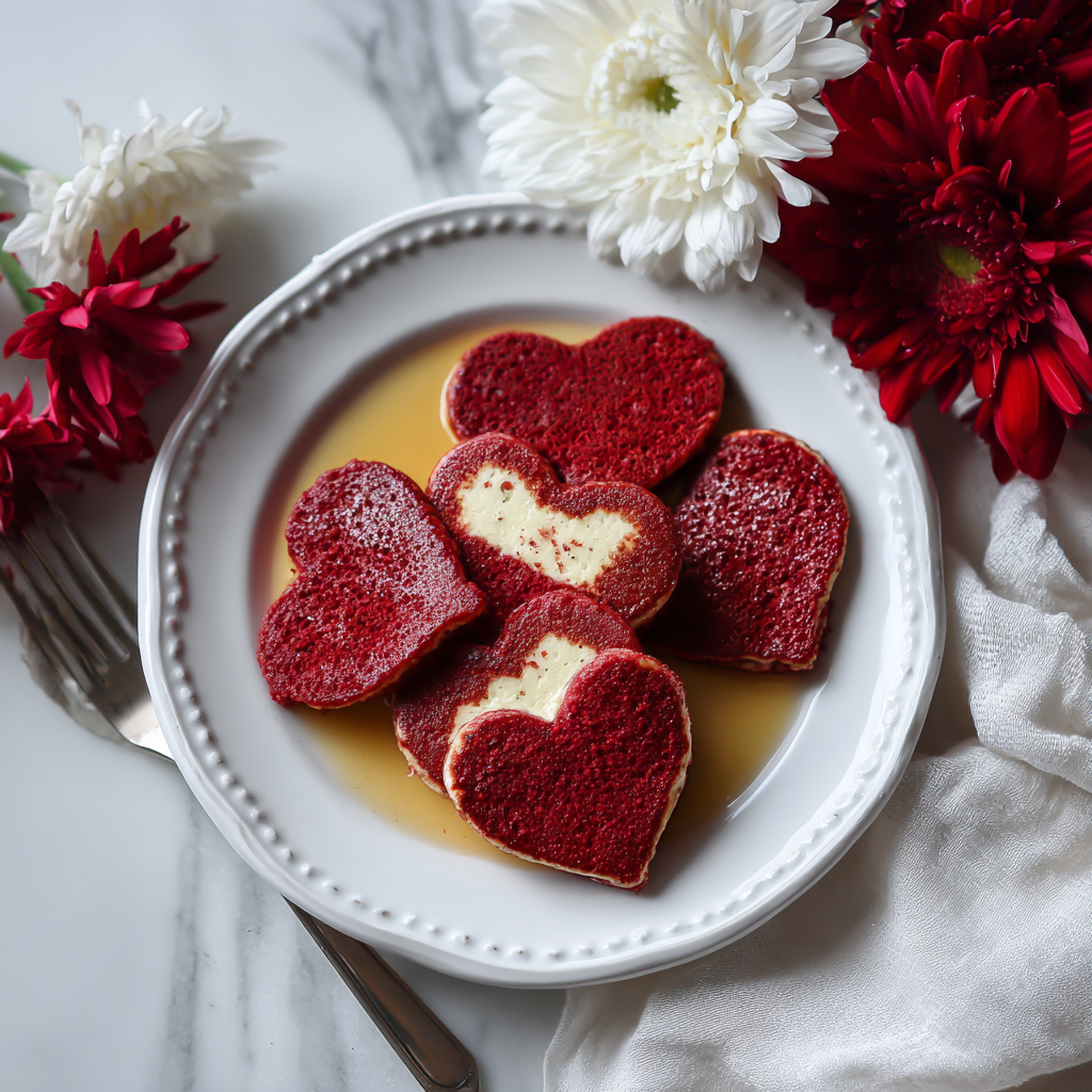 Serve these heart-shaped red velvet pancakes for breakfast or brunch on special occasions such as Valentine’s Day, anniversaries, Mother’s Day, or any morning when you want to celebrate the people you love. Next, present them on beautiful plates with careful attention to garnish and presentation, creating a dining experience that feels genuinely luxurious and thoughtful.