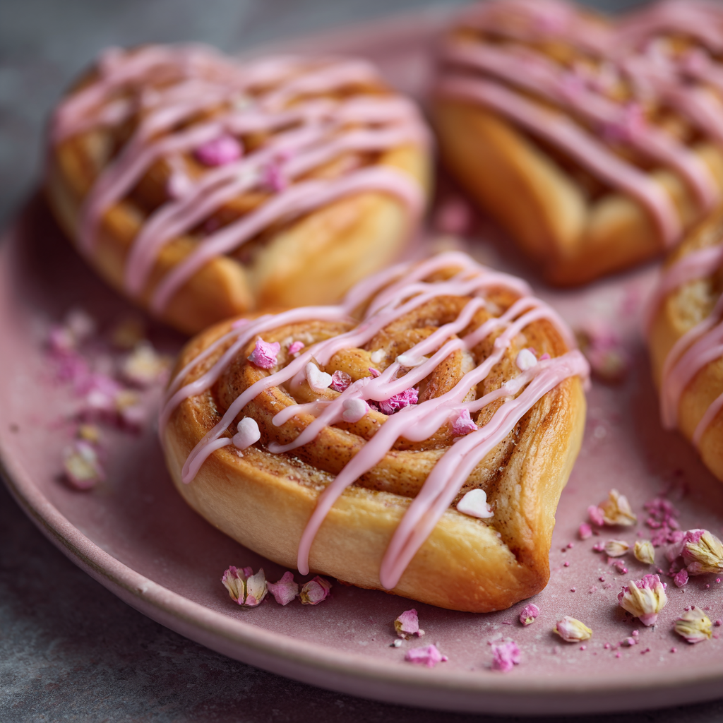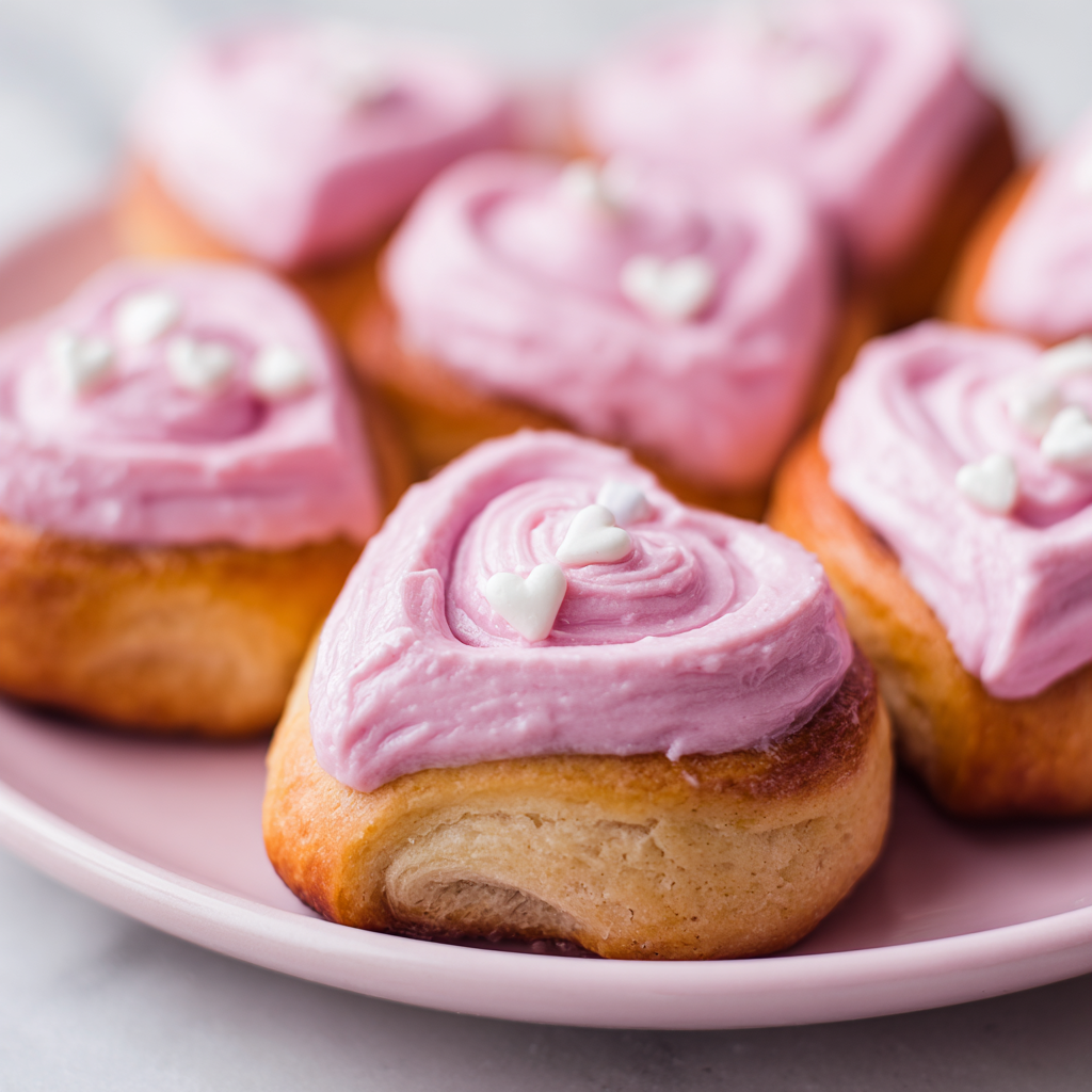 Several practical considerations will help you create beautiful, delicious heart-shaped sweet rolls that turn out perfectly every single time. First, the temperature of the milk is genuinely important—use an instant-read thermometer to verify it’s around 110°F, which is warm enough to activate yeast but not so hot it kills it. Next, don’t skip the second rise; although time-consuming, it ensures the rolls are light, fluffy, and tender rather than dense or heavy. Additionally, creating the heart shape requires only gentle finger work—overly aggressive shaping can deflate the rolls, so use a light touch and trust the process. Meanwhile, these rolls are fairly forgiving regarding icing consistency; if it’s slightly too thick, add a tiny splash of milk; if too thin, add more powdered sugar. The heart shape doesn’t need to be perfect to be charming—rustic, imperfectly formed hearts actually photograph beautifully and convey authentic handmade effort. Those preferring less sweet rolls can reduce the brown sugar filling or skip it entirely, though it contributes essential flavor development. For deeper cinnamon flavor, increase the cinnamon in the filling to 1½ teaspoons, or add a small pinch of nutmeg for warmth. The pink food coloring matters—gel coloring produces more vibrant pink without thinning the icing like liquid food coloring does, so consider investing in gel if you frequently make pink icing. For a more natural pink, use crushed freeze-dried strawberries whisked into the icing instead of food coloring, though this slightly affects texture. If rolls don’t rise properly, your environment might be too cold; place them in an oven with the light on, a turned-off oven preheated then turned off, or another warm location like a proofing box.