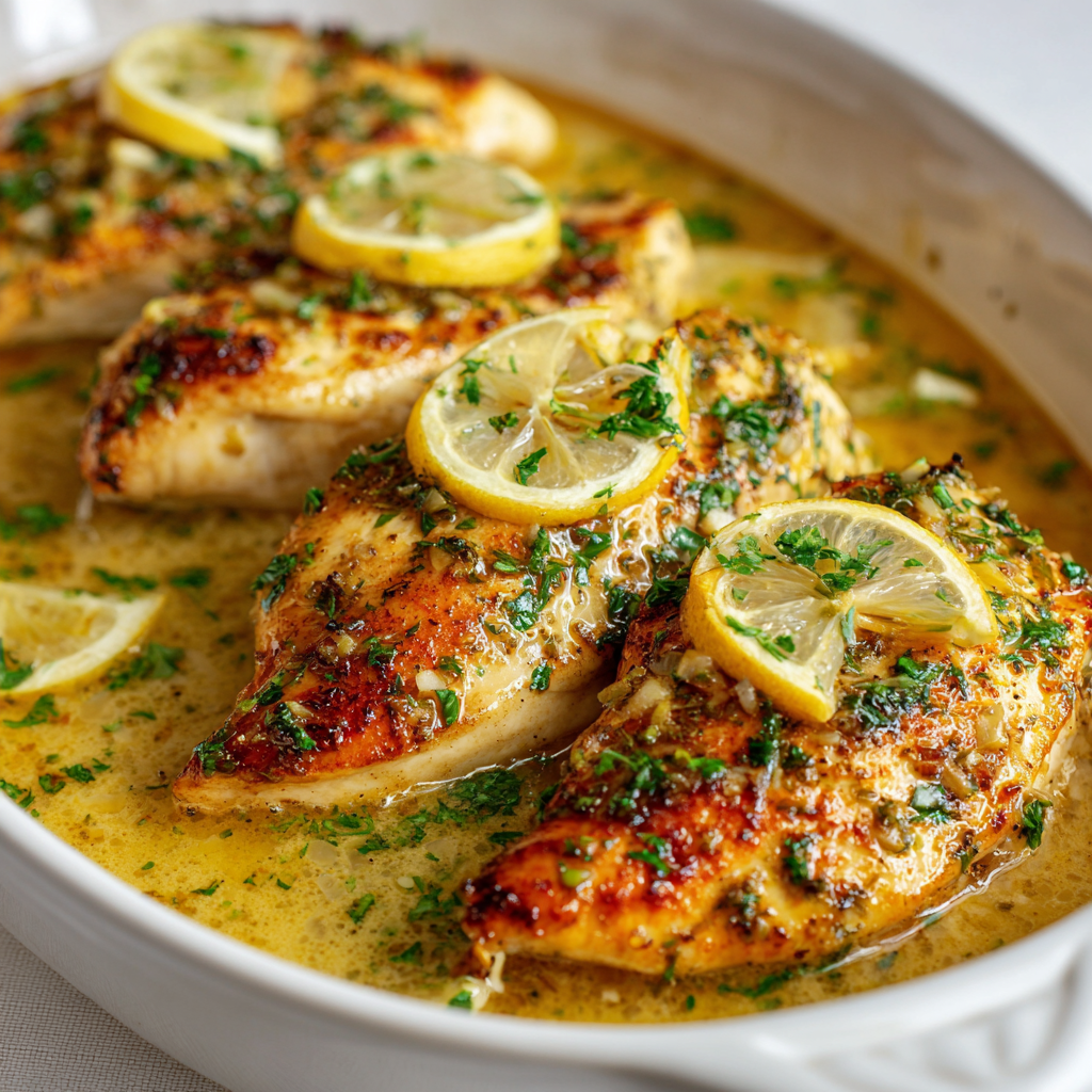 • 4 boneless, skinless chicken breasts (about 6-8 ounces each) • 4 tablespoons unsalted butter, divided • 6 cloves fresh garlic, minced • 1/2 cup fresh lemon juice (about 3-4 lemons) • 1 cup chicken broth • 1/2 cup dry white wine or additional chicken broth • 1 teaspoon kosher salt • 1/2 teaspoon black pepper • 1/2 teaspoon garlic powder • 1/4 teaspoon paprika • 2 bay leaves • 1 teaspoon fresh thyme leaves (or 1/2 teaspoon dried) • 1 teaspoon fresh rosemary leaves (or 1/2 teaspoon dried) • 2 tablespoons fresh lemon zest • 3 tablespoons fresh parsley, finely chopped • 1 tablespoon cornstarch mixed with 2 tablespoons water (optional, for thicker sauce) • Olive oil for cooking