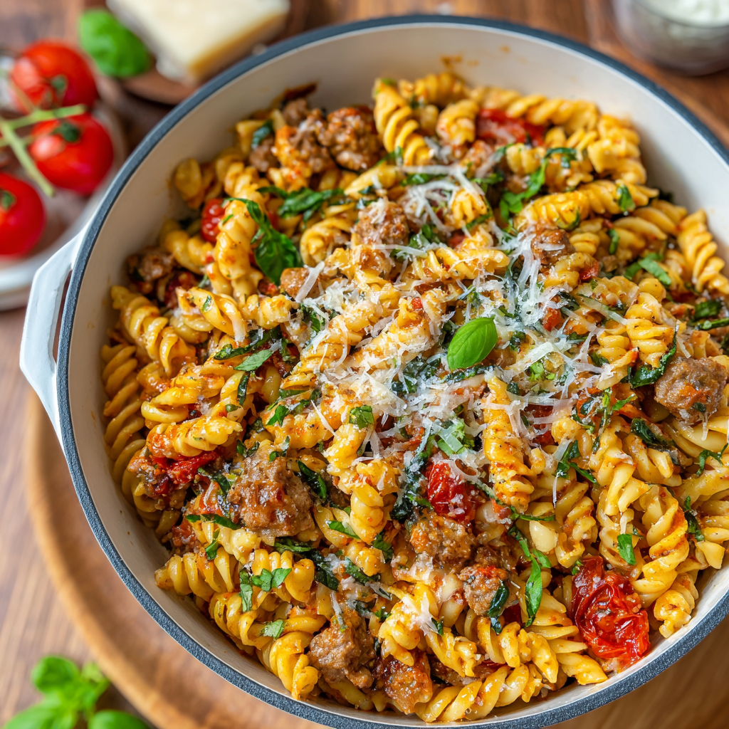 There’s something wonderfully liberating about a meal that comes together entirely in one pot, transforming what could be a complicated cooking process into something beautifully simple and utterly stress-free. One Pot Sausage Pasta brings together smoky Italian sausage, tender pasta, and a savory tomato-based sauce all in a single vessel, creating a complete dinner that tastes like you’ve spent hours stirring and tending when reality is far more forgiving. This is the kind of dish that fills your kitchen with incredible aromas, delivers impressive results without demanding extensive prep work, and leaves you with minimal cleanup so you can actually enjoy your meal instead of spending an hour at the sink. First, what makes this recipe so special is how the pasta cooks directly in the sauce, absorbing all those wonderful flavors and creating a dish that’s somehow more cohesive and delicious than when components are prepared separately. Next, the sausage renders its flavorful fat into the sauce, infusing every strand of pasta with rich, savory depth that tastes like pure comfort. Additionally, this entire meal comes together in about thirty minutes, making it perfect for busy weeknights when time is precious and stress levels are high. Whether you’re cooking for your family on a Tuesday night or feeding guests who appreciate no-fuss home cooking, one pot sausage pasta delivers restaurant-quality results with the kind of simplicity that makes you feel like a confident, capable cook.