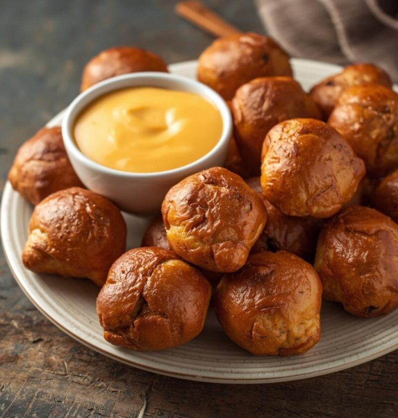 Pretzel bites with cheese sauce are the ultimate combination of soft, chewy pretzels and creamy, golden cheese dip that delivers pure comfort food satisfaction in every single bite. These adorable little nuggets of warm, salted dough paired with an irresistibly smooth and velvety cheese sauce create the kind of snacking experience that keeps people reaching for more despite their best intentions to stop. What makes this recipe so special is the way the warm, soft pretzel interior contrasts beautifully with the crispy, salt-kissed exterior, then melts together with the rich, savory cheese sauce into something absolutely addictive. Additionally, these are the kind of appetizers that work equally well at casual game day gatherings, movie nights, elegant cocktail parties, or as a fun contribution to any potluck where impressive presentation and genuine deliciousness matter equally. The beauty of pretzel bites lies in their incredible versatility and the way they can be customized with different seasonings, cheese varieties, and sauce variations while maintaining their irresistible appeal. Furthermore, despite their sophisticated appearance and indulgent taste, they’re remarkably straightforward to prepare, making them perfect for busy home cooks who want to create restaurant-quality appetizers without spending hours in the kitchen.