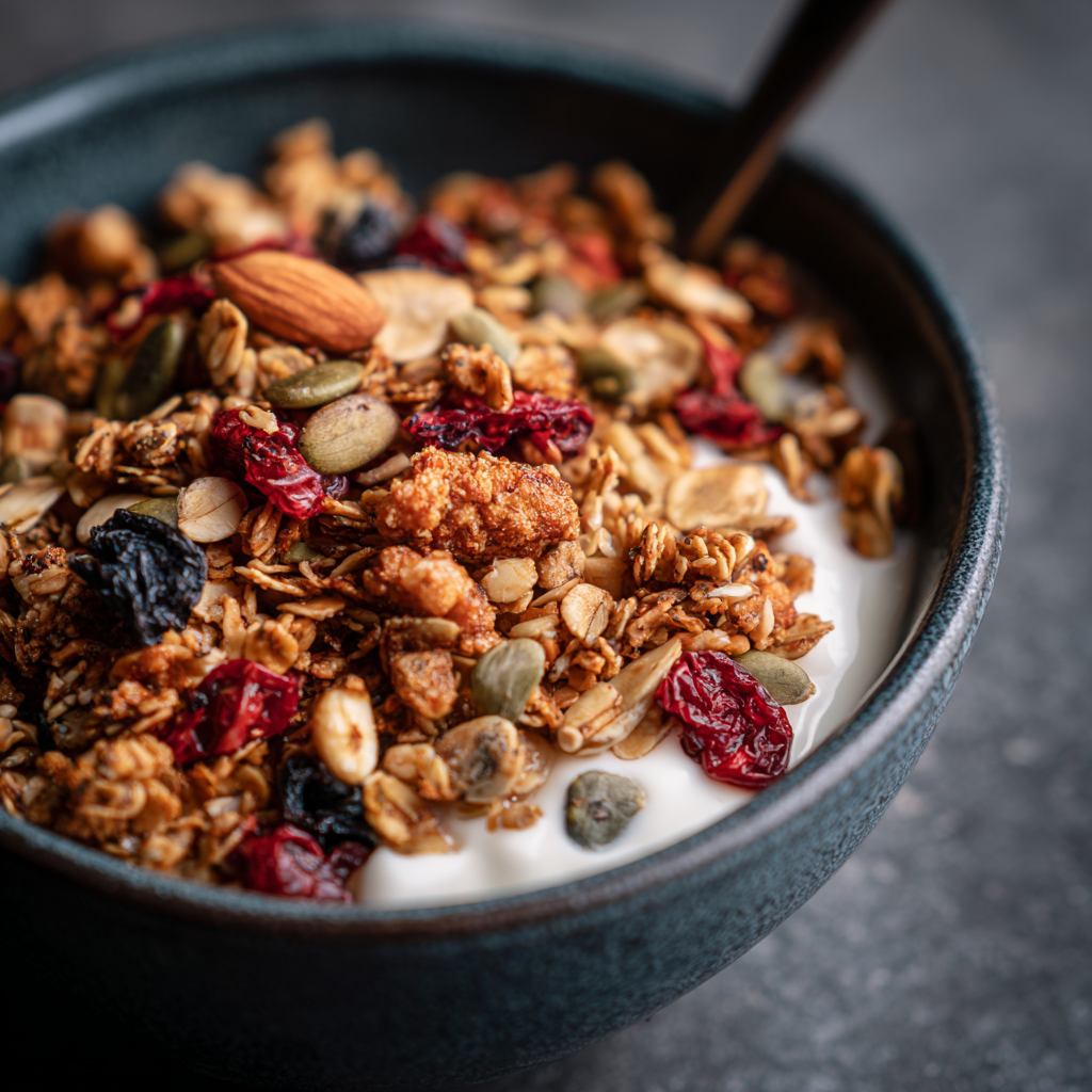 Can I make this granola ahead of time and store it for future use? Yes, granola stores beautifully for up to 3 weeks in airtight containers at room temperature, making it perfect for advance preparation and convenient grab-and-go breakfasts.