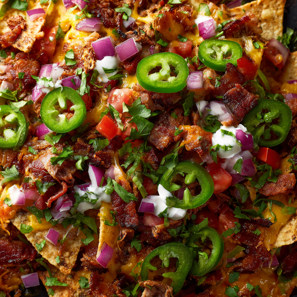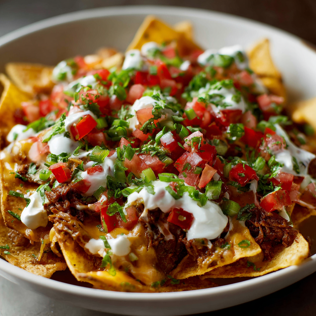 There’s nothing quite like the excitement of gathering to watch the big game while sharing generously loaded nachos that transform ordinary moments into genuinely memorable celebrations. First, these Super Bowl loaded nachos represent the perfect solution for anyone seeking impressive finger food that tastes authentically indulgent while delivering genuine satisfaction without requiring complicated preparation. The beauty of this recipe lies in how it celebrates simple layering technique that creates complete meals with diverse textures, temperatures, and flavors all delivered in one gloriously shareable format. What makes this dish truly special is how guests customize their bites based on available toppings, creating personal favorites while celebrating together. Additionally, these loaded nachos work beautifully for Super Bowl parties, sports celebrations, casual entertaining, tailgates, or anyone seeking satisfying game day food that disappears faster than you can refill the platter. Whether you’re preparing them specifically for Super Bowl Sunday or making them regularly throughout the year for game day gatherings, the result remains the same—absolutely delicious, completely customizable nachos that rival sports bar versions in every meaningful way. The combination of crispy chips, melted cheese, seasoned proteins, fresh vegetables, and creamy garnishes creates irresistible bites appealing to everyone from casual nacho enthusiasts to devoted fans seeking something genuinely special and utterly unforgettable.