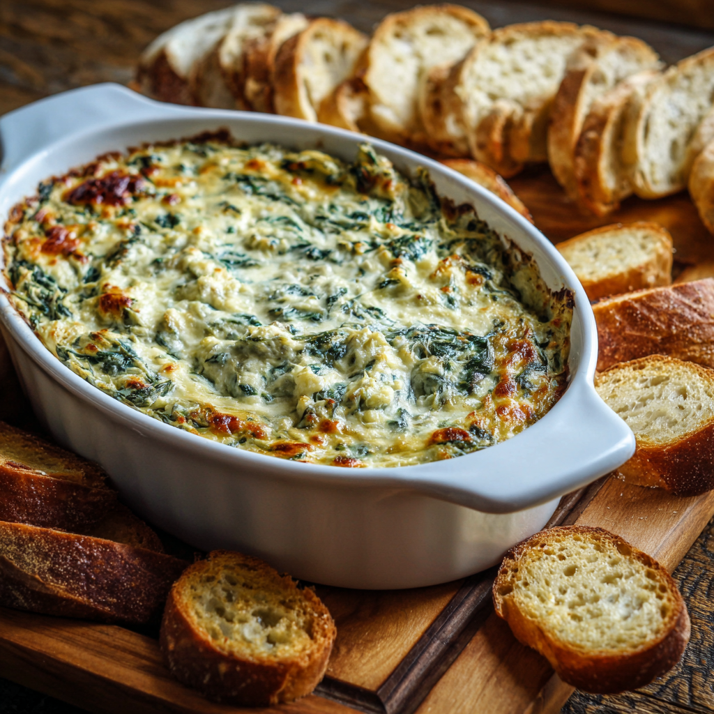 Serve your spinach artichoke dip warm directly from the oven with cheesy aroma filling the air. First, present the dip in its baking dish allowing guests to scoop easily. Additionally, positioning diverse accompaniments encourages customization and exploration. Meanwhile, this spinach artichoke dip works beautifully as Super Bowl appetizer, sophisticated entertaining, potluck offering, or party food appealing across all preferences.