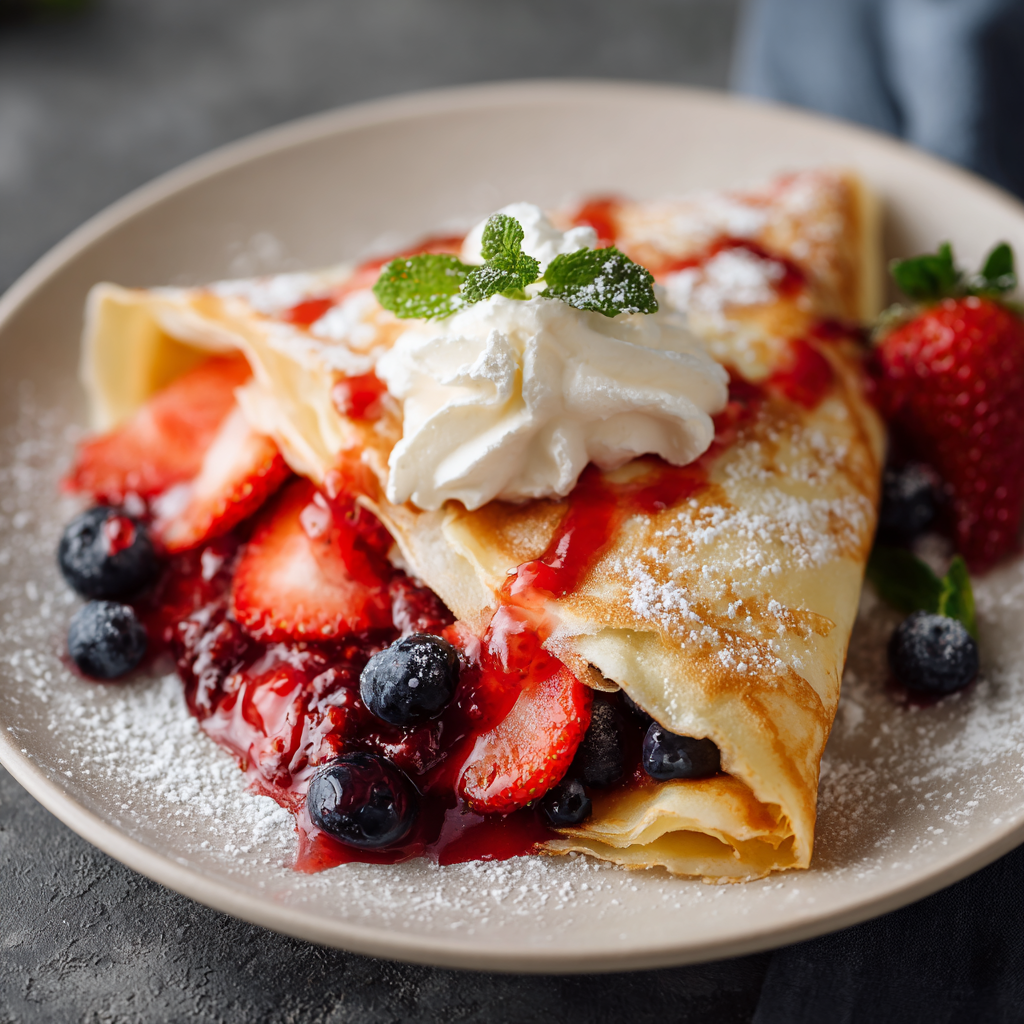 Did you love making these sweet berry crepes? If this recipe brought a touch of elegance to your morning or impressed your loved ones with its restaurant-quality results, please save it to your recipe collection, pin it to your breakfast and brunch boards, and share it with friends who appreciate beautiful, delicious food. Your enthusiasm and support inspire us to continue creating and sharing recipes that make everyday cooking feel special and achievable. We’d be thrilled to see your crepe creations—tag us in your photos and tell us what berries or fillings you tried. Let’s keep the conversation going and the crepes flowing!