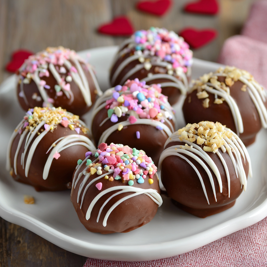 - Sprinkle red Valentine’s sprinkles, edible glitter, or small heart-shaped candies onto the ganache coating while it’s still slightly sticky, allowing the decorations to adhere beautifully.