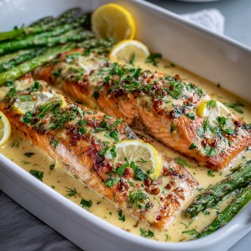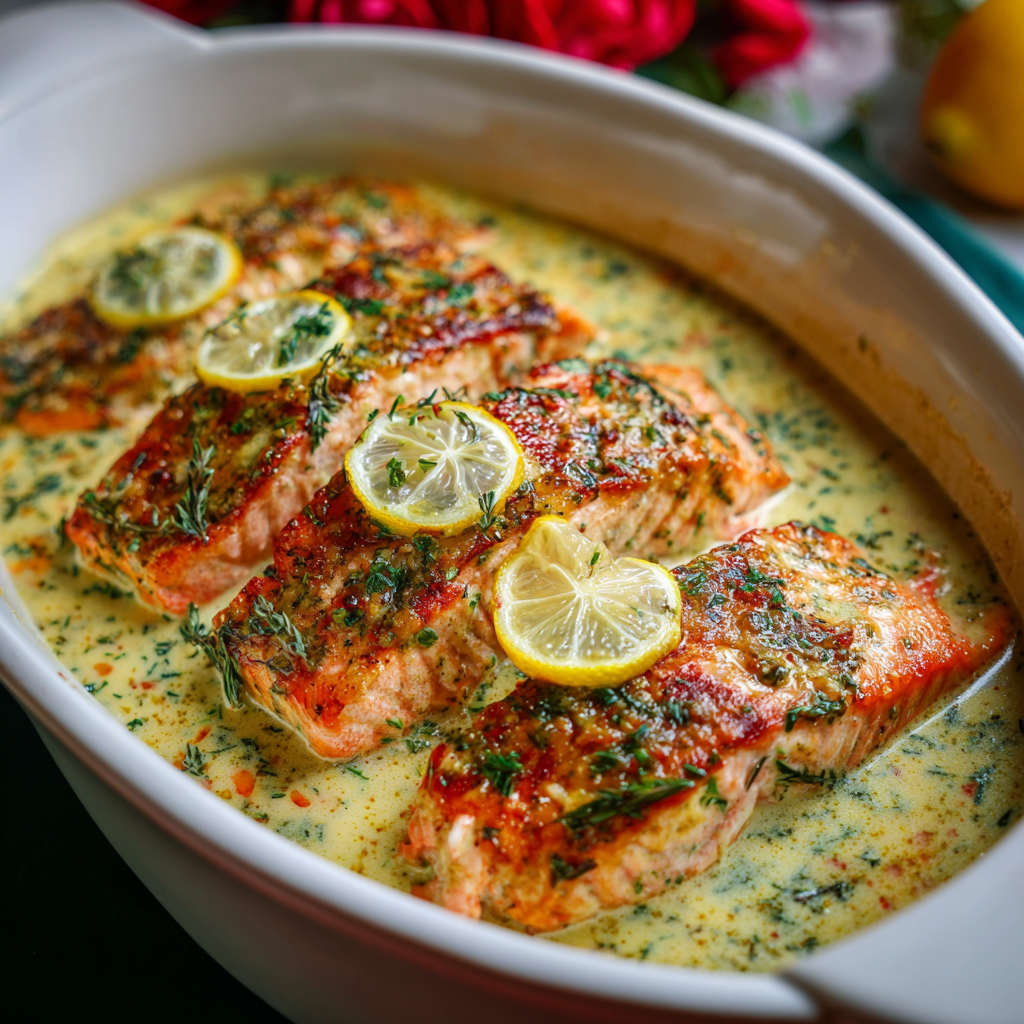 There’s something undeniably elegant about serving a perfectly cooked salmon fillet topped with a silky, luxurious lemon butter cream sauce that tastes like it came straight from an upscale seafood restaurant while remaining remarkably simple and achievable in your own kitchen. This Valentine’s Creamy Lemon Butter Salmon Recipe combines tender, flaky salmon with a sophisticated sauce that balances bright citrus notes with rich, buttery indulgence, creating a dish that feels completely special and genuinely impressive without requiring any complicated techniques or hard-to-find ingredients. What makes this recipe truly extraordinary is how it transforms a few quality ingredients into something that tastes decadent and celebratory while being ready to serve in under thirty minutes, making it absolutely perfect for intimate Valentine’s Day dinners or whenever you want to create something restaurant-quality at home. Whether you’re planning a romantic dinner for two, celebrating an anniversary, or treating someone you love to something spectacular, this creamy lemon butter salmon delivers restaurant-worthy results that will absolutely sweep them off their feet. The combination of perfectly seared salmon with that incredible lemon butter cream sauce creates an eating experience that feels completely luxurious, deeply satisfying, and genuinely achievable for home cooks at any skill level. Your loved one will be absolutely enchanted by the thoughtfulness, impressed by how delicious and elegant something so straightforward can be, and utterly satisfied with every single bite of this absolutely stunning dish.