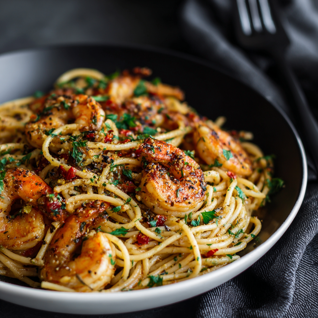 This spicy shrimp pasta is wonderfully elegant in how you present it for maximum romantic impact. For an intimate dinner, plate individual servings carefully, placing the shrimp artfully on top and ensuring each portion looks as beautiful as it tastes. Next, serve alongside a simple green salad and a glass of crisp white wine for a complete, restaurant-quality meal.