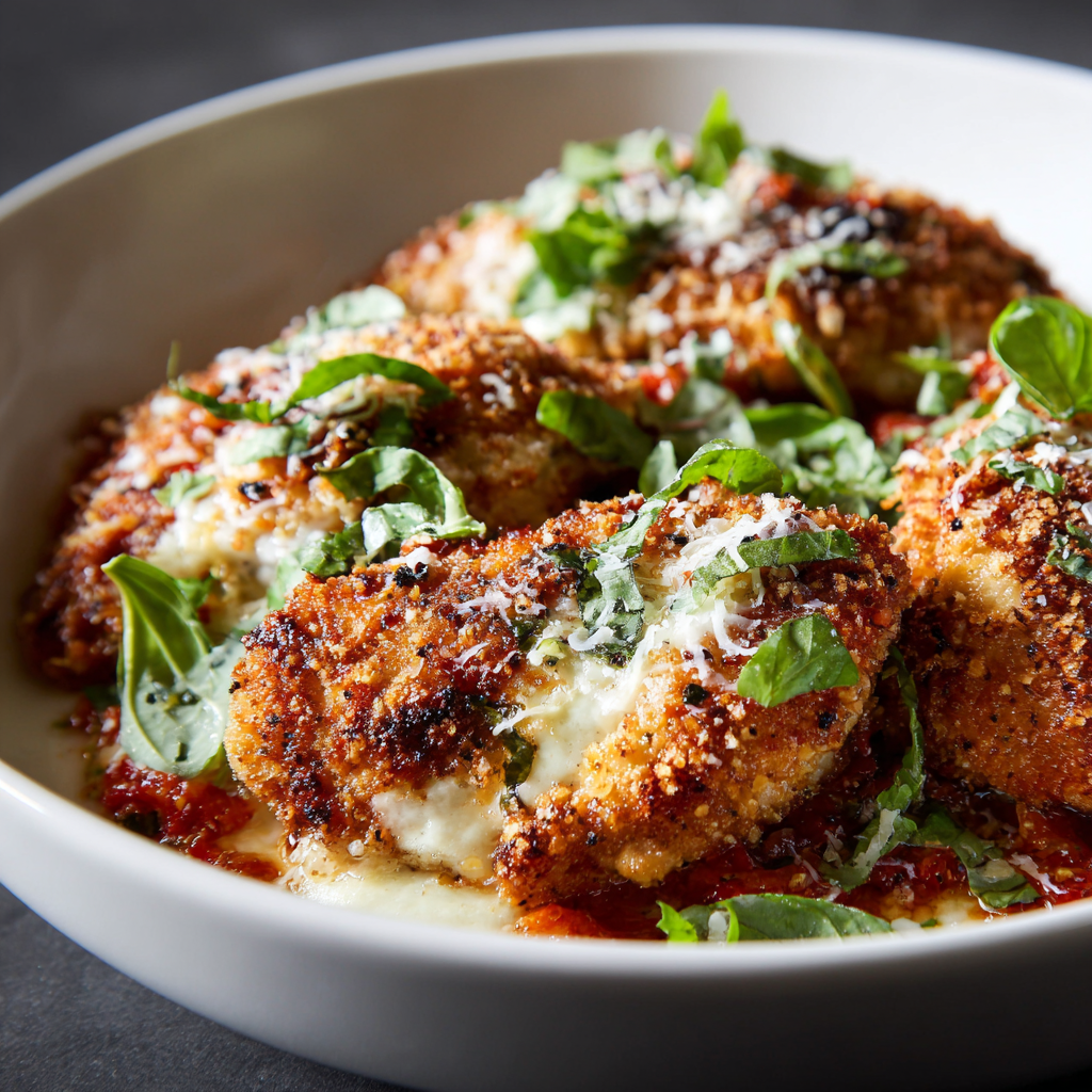Seasoning the chicken before breading builds flavor from within rather than just relying on the coating for all the taste. Salt, pepper, garlic powder, and Italian seasoning create savory depth that makes the chicken itself delicious rather than just a vehicle for breading and sauce. Don’t skip this step—it’s the difference between chicken that tastes seasoned throughout versus chicken that tastes like bland meat wrapped in flavorful coating. These foundational flavors ensure every element of the dish contributes to the overall deliciousness.