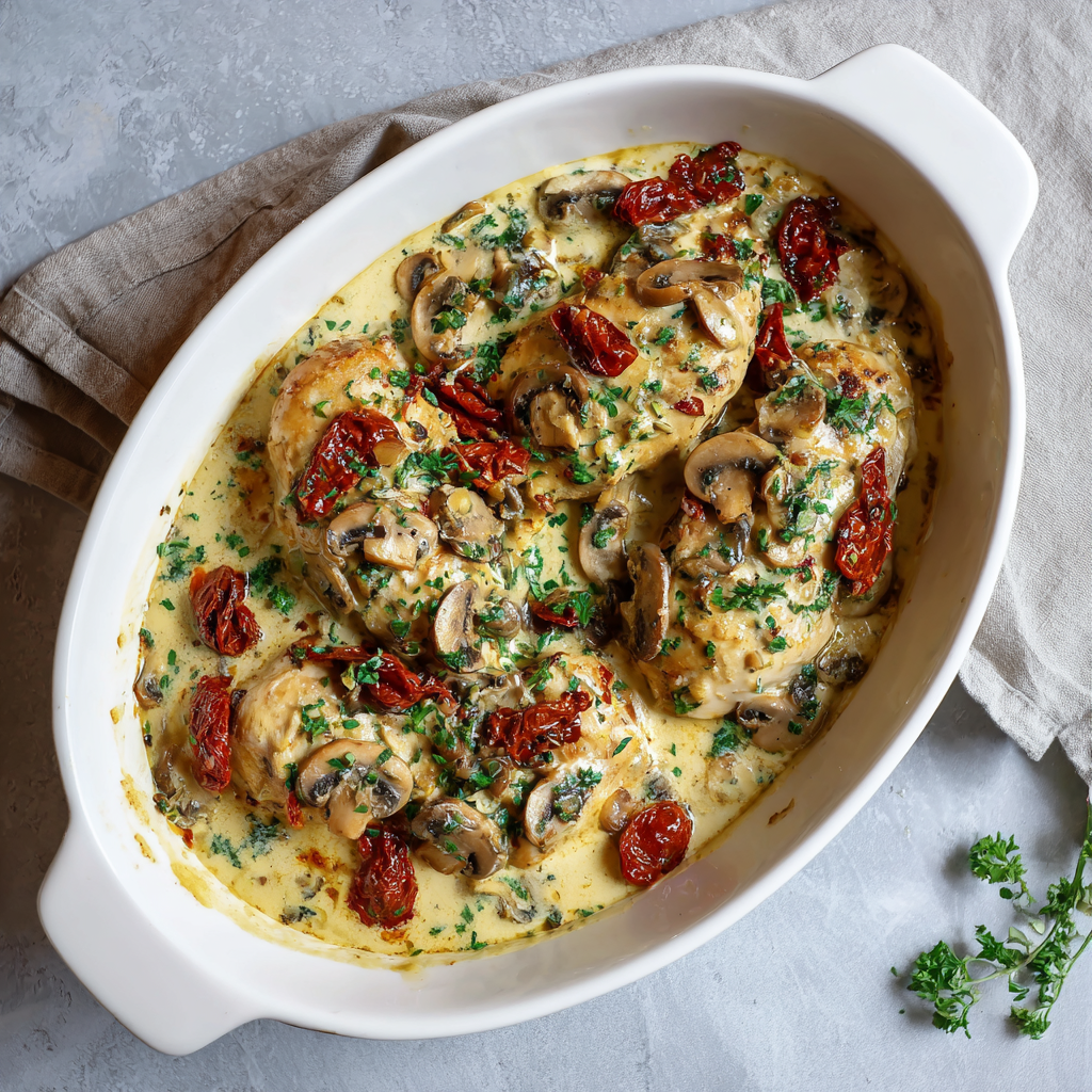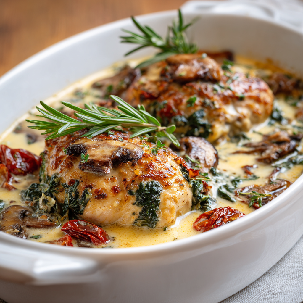 Winter creamy Tuscan chicken represents the perfect marriage of Italian sophistication and comforting warmth, delivering elegant flavors that feel restaurant-quality while remaining simple enough for busy weeknight dinners. This exceptional dish combines tender chicken breasts with sun-dried tomatoes, fresh spinach, garlic, and silky cream to create something absolutely delicious that tastes like you’ve spent hours perfecting it in the kitchen. What makes this recipe truly special is how it transforms basic ingredients into something genuinely memorable through proper technique and thoughtful flavor combinations that work together harmoniously. Whether you’re seeking impressive dinner party entrées, family meals that feel special, or simple weeknight solutions that don’t compromise on taste or presentation, this creamy Tuscan chicken delivers impressive results that become instant favorites. The combination of tender chicken, sun-dried tomato richness, fresh spinach nutrition, and creamy sauce creates layers of flavor that develop beautifully as everything cooks together, becoming more complex and satisfying with every bite. From the moment you begin searing the first chicken breast to the final moment you plate this restaurant-worthy creation, you’ll appreciate how thoughtful cooking and quality ingredients create something genuinely exceptional that tastes far better than takeout.